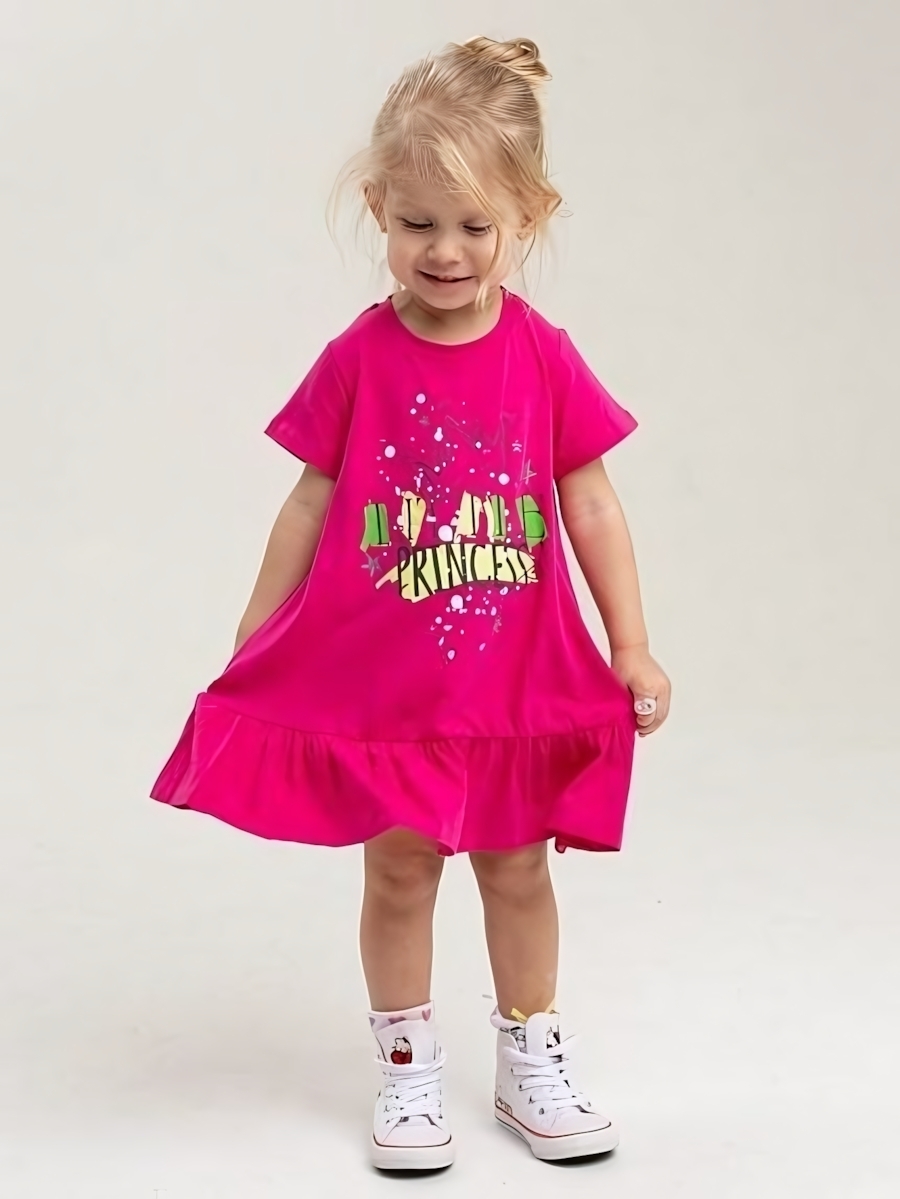 Подарите своей дочке комфорт и радость с этим очаровательным платьем в стиле 'PRINCESS'. Мягкий хлопковый трикотаж (95% хлопок, 5% полиэстер) обеспечивает свободу движений и приятные тактильные ощущения.