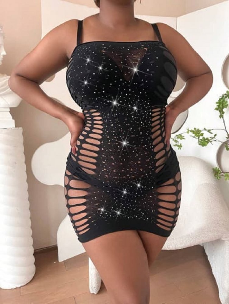 Платье сетчатое Shans с мерцающими стразами, черное, размер XXL/XXXL