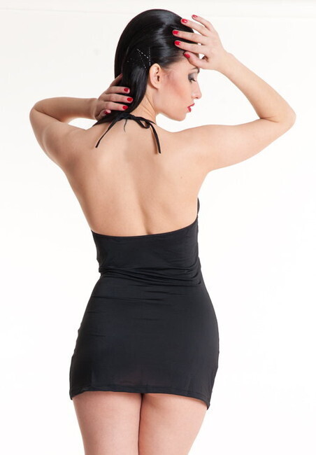 Черное платье 'EROLANTA' создано для женщин, которые ценят стиль и удобство. Благодаря эластичному материалу (85% нейлон, 15% эластан), оно идеально садится по фигуре, подчеркивая все достоинства силуэта.