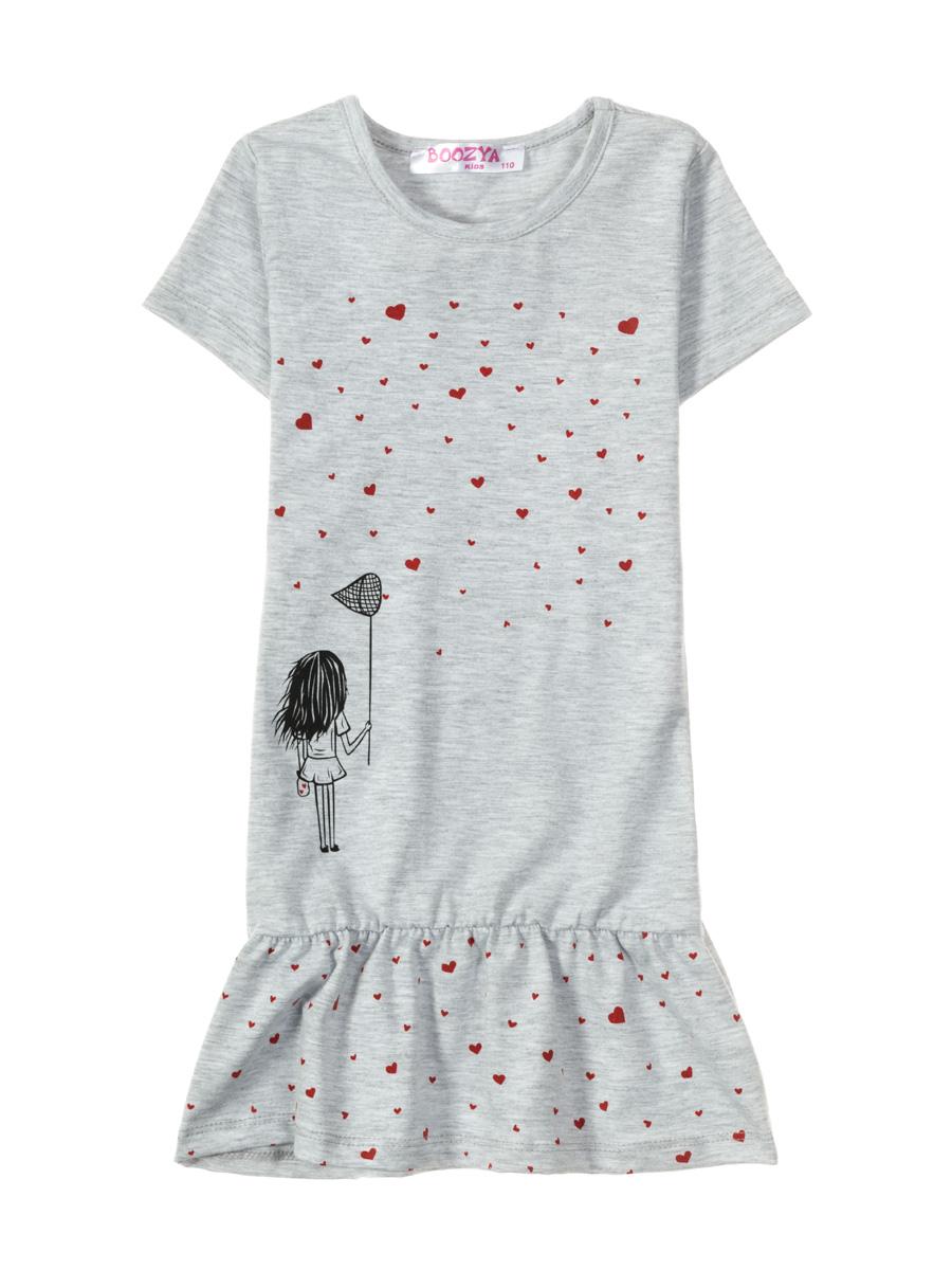 Размер платье — 116, что идеально подойдет для девочек данного роста. С серым цветом и рисунком из мелких красных сердечек, платье станет ярким акцентом в гардеробе. Дополнительный элемент — рюша в нижней части добавляет изюминку, делая его еще более привлекательным. Платье с короткими рукавами отлично подойдет для тёплой погоды.