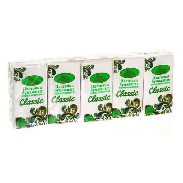 Платочки носовые бумажные Amra 'Classic', 2 слоя, 10 шт., целлюлоза, мягкие и прочные