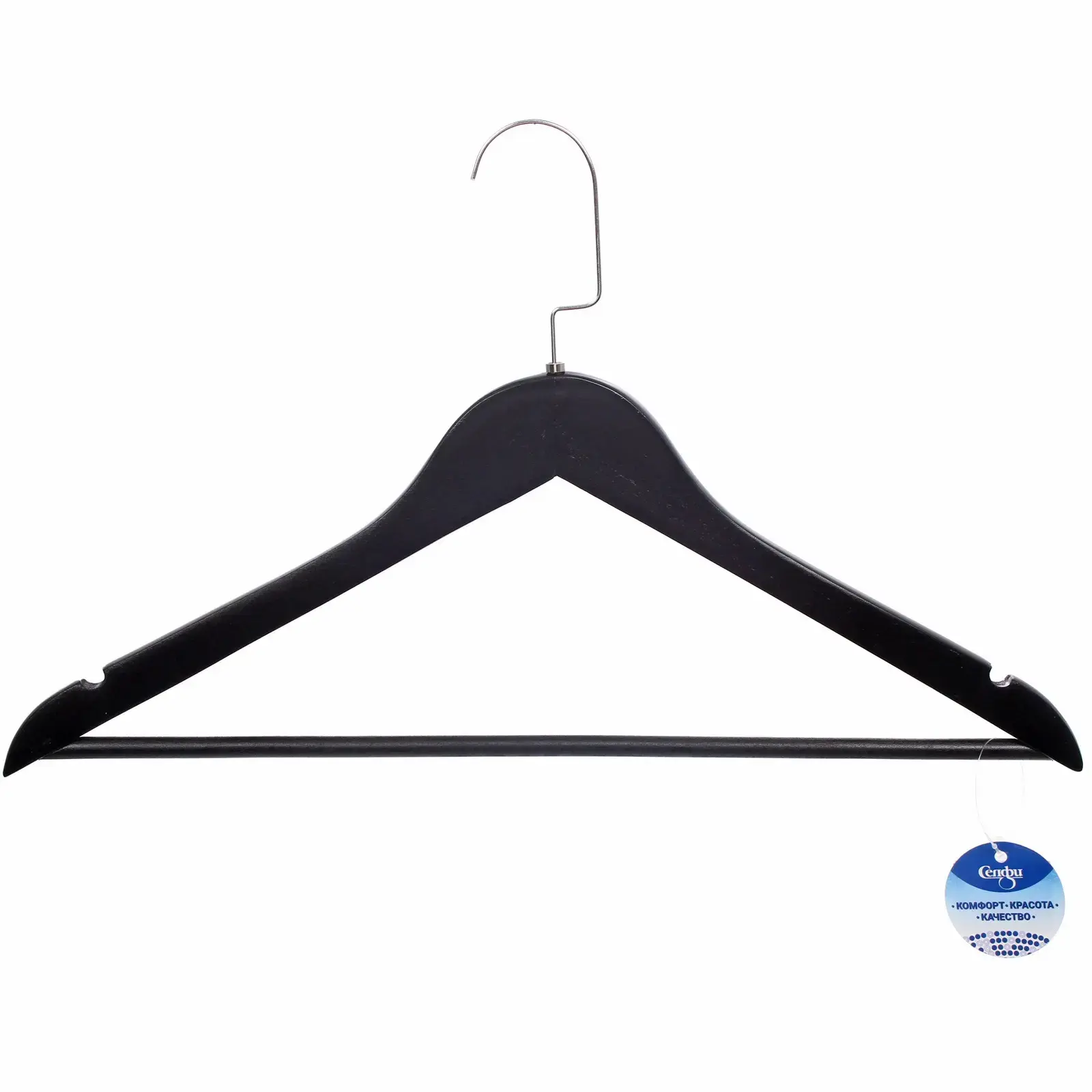 Плечики деревянные 'ДОМания' черные, крючок серебро, 44*25.5см