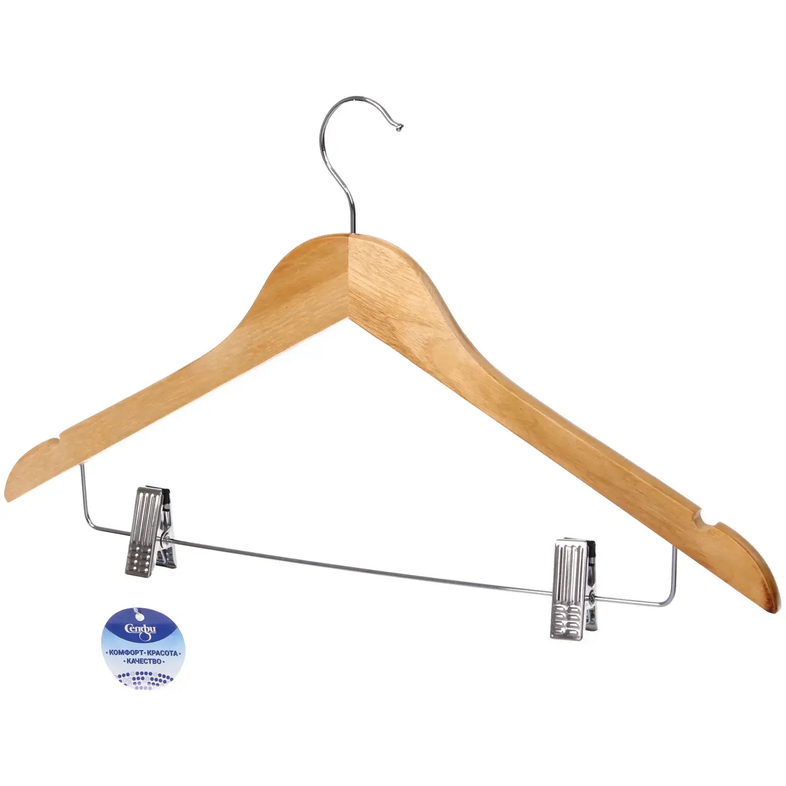Плечики деревянные 'ДОМания', натуральное дерево, 45*34*23см, с зажимами