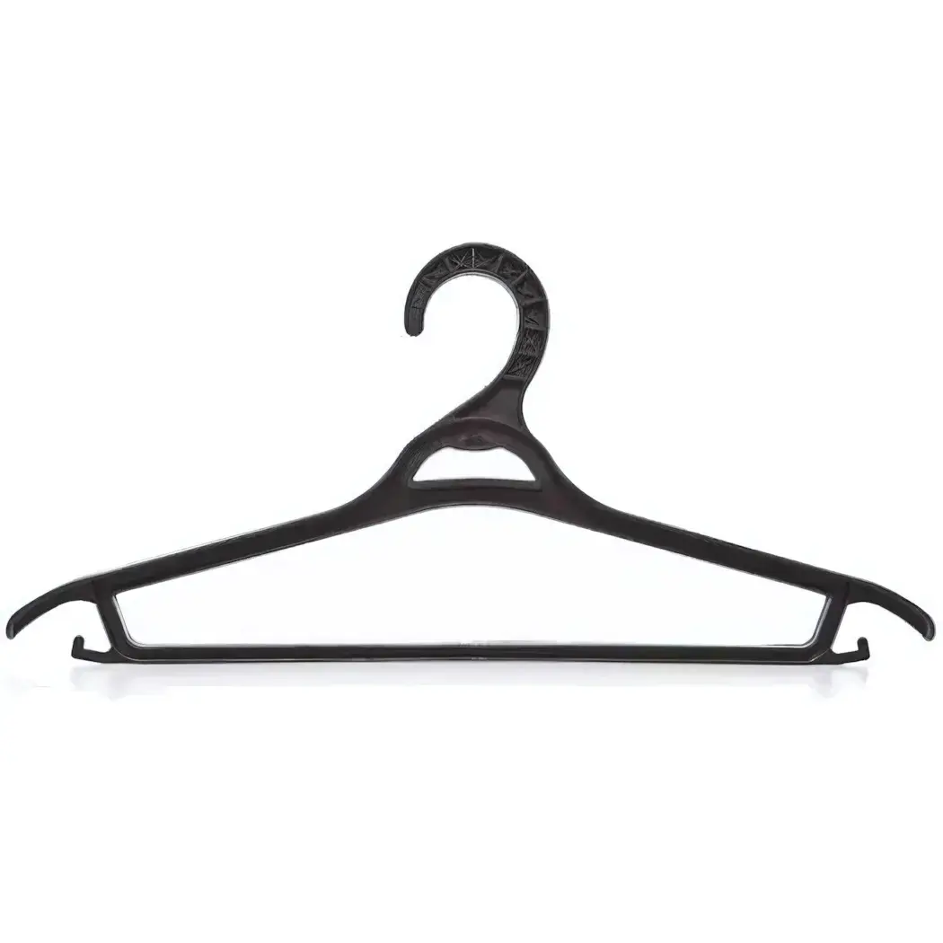 Изготовленные из ударопрочного пластика, вешалки не деформируются со временем. Закругленные края предотвращают появление зацепок на тканях, а удобный крючок с рифлением обеспечивает надежную фиксацию на перекладине.
