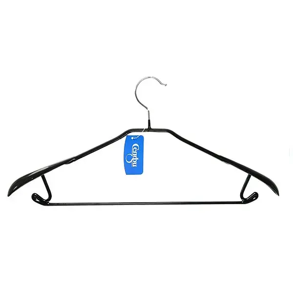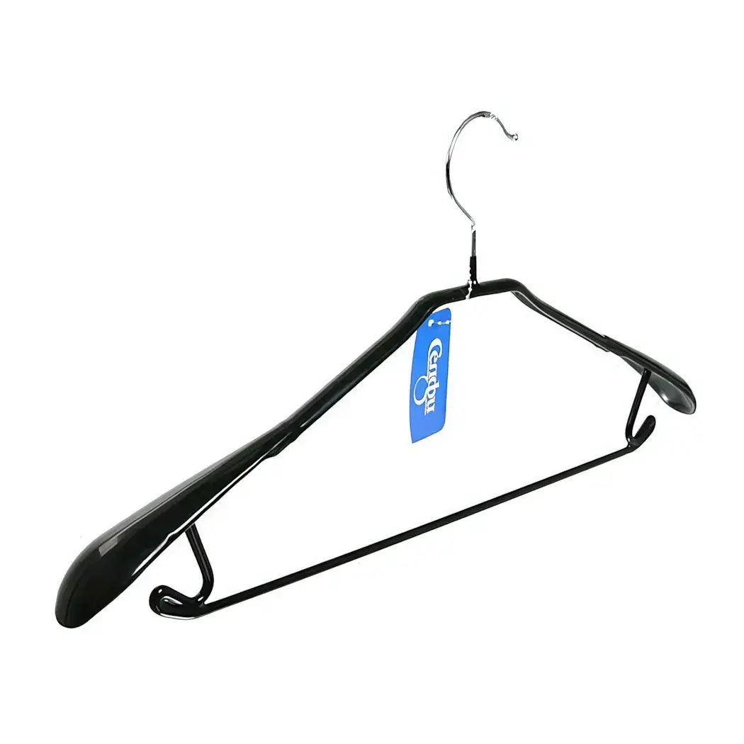 Плечики выполнены из прочного металла с полимерным покрытием, что делает их устойчивыми к износу. Черный цвет придает им стильный и современный вид, который впишется в любой интерьер. Размер 44 см подходит для большинства стандартных вещей, а антискользящие элементы обеспечивают надежное удержание одежды.
