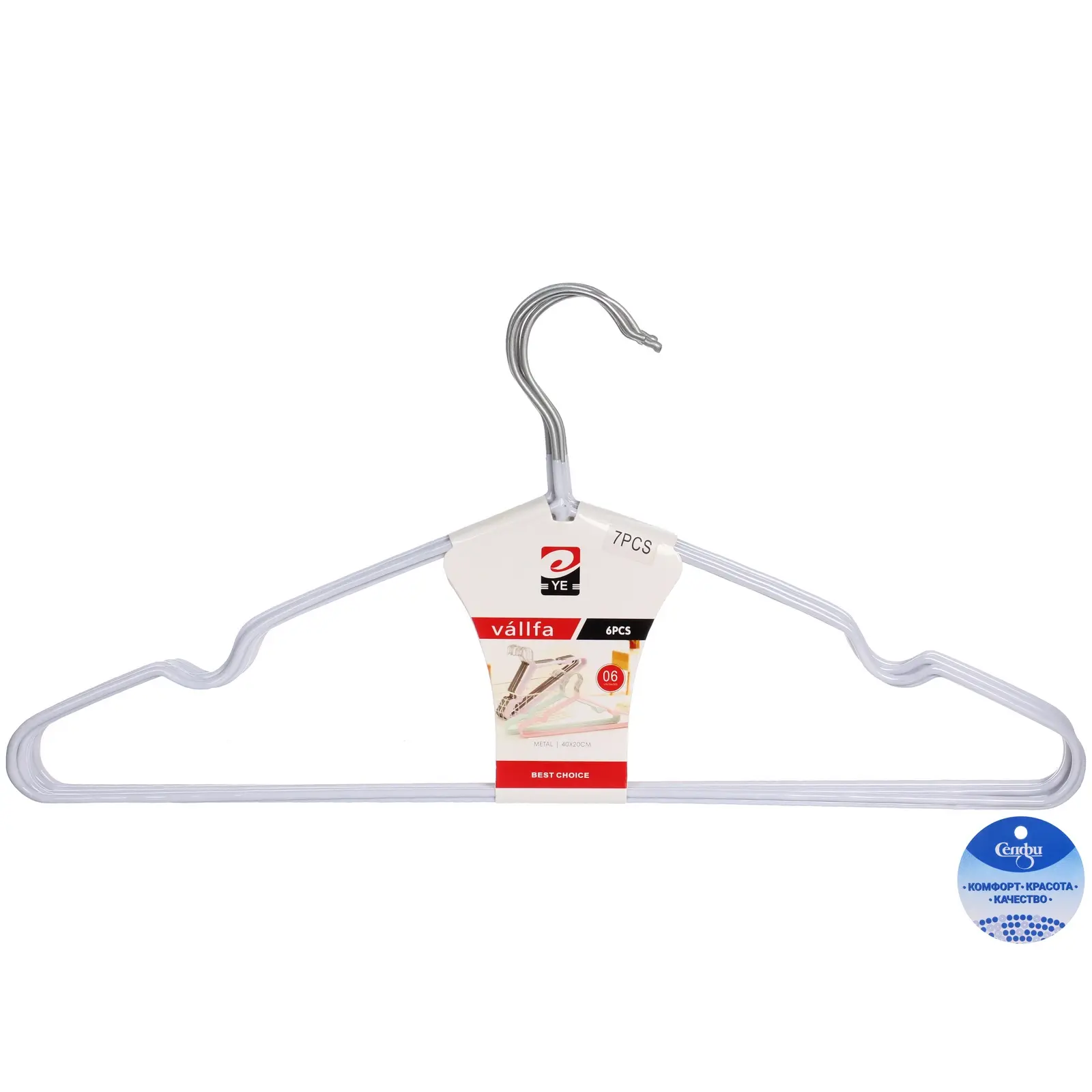 Шкаф переполнен? 7 прочных плечиков в белом цвете выстроят одежду аккуратной колонной и освободят до 30 % места. Комплект подходит и для пальто, и для футболок: ширина 41 см и полимерное покрытие не деформируют плечевую зону, а выемка под держатель фиксирует ремни и топы с тонкими бретелями, чтобы ничего не скользило.