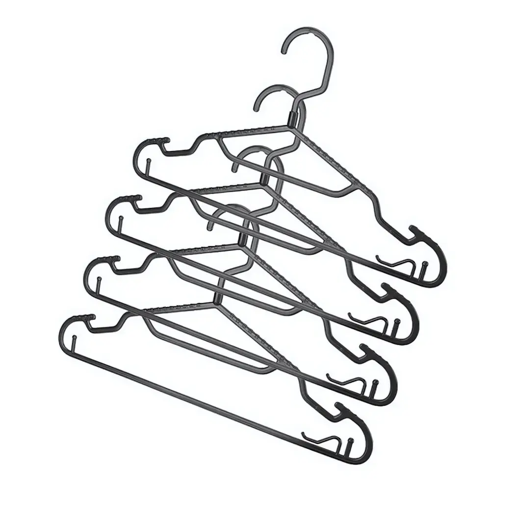 Сэкономьте место в шкафу и наведите порядок с комплектом из 4 черных металлических вешалок 'ЭксперТХаус'. Их нескользящая текстура надежно удерживает одежду, предотвращая скатывание тканей.