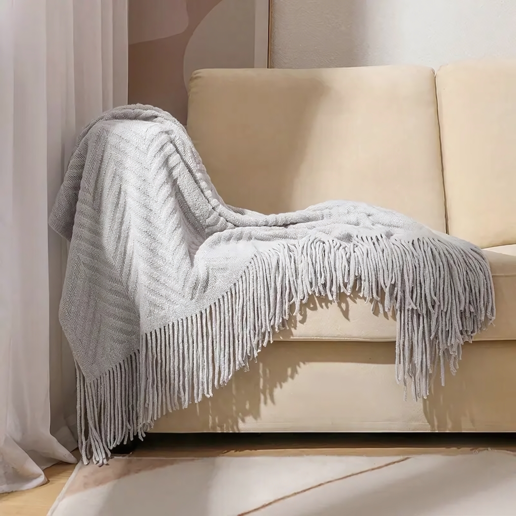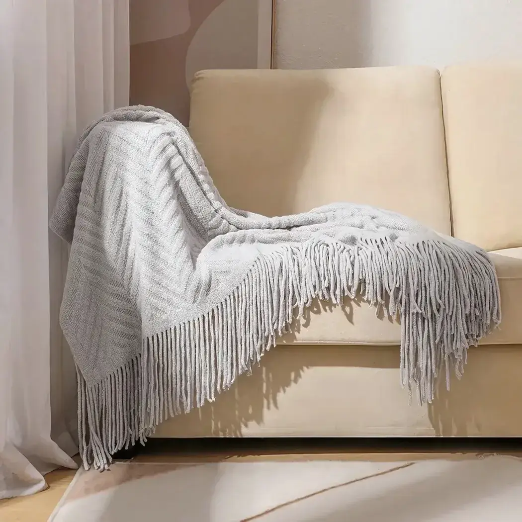Плед сочетает в себе практичность и современный дизайн, что делает его универсальным выбором для дома. Материал устойчив к износу и прост в уходе, сохраняя первоначальный вид после многократных стирок.