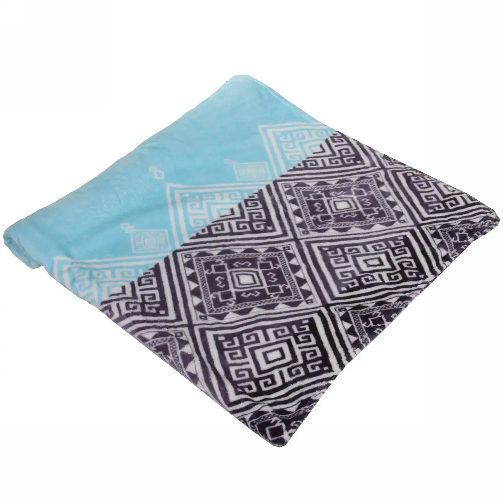 Размер 150x200 см оптимален для использования на односпальной кровати или в качестве покрывала для дивана. Полиэстер повышенной плотности (280 г/м²) обеспечивает долговечность, при этом материал остается воздухопроницаемым. Два рабочих варианта расцветки: нежно-бирюзовая сторона с геометрическим принтом и контрастная черно-белая с графичным узором.