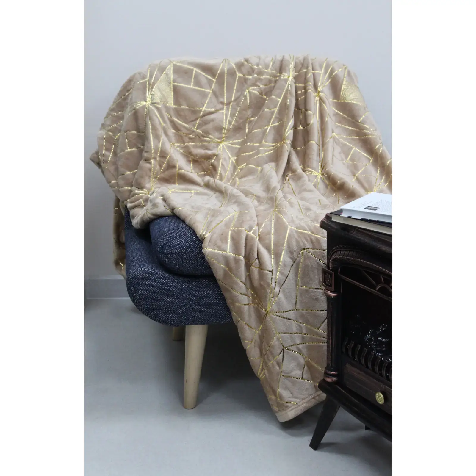 Плед размером 180х200 см в бежевом цвете с золотыми геометрическими узорами станет идеальным дополнением вашего интерьера. Он не только украсит ваш диван, но и подарит тепло и уют в холодные вечера. Изготовленный из мягкого и приятного на ощупь микрофлиса, этот плед гипоаллергенен и подходит для людей с чувствительной кожей.