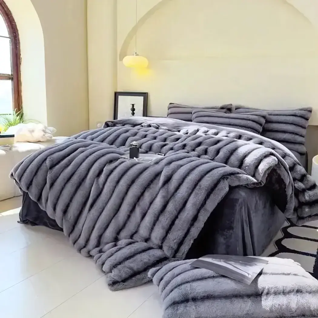 Серый цвет в сочетании с текстурой «меха» создаёт эффект многослойности в декоре. Универсальный вариант для тех, кто ценит лаконичность и функциональность в деталях.