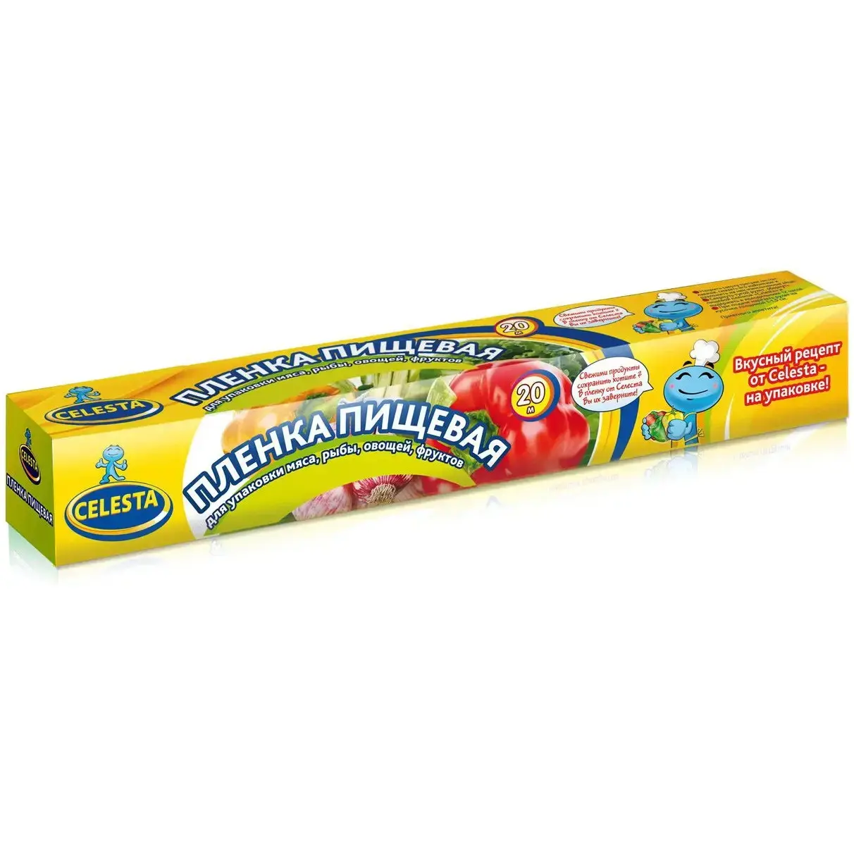 Пленка пищевая «CELESTA» — это ваш надежный помощник на кухне, который обеспечивает длительное хранение продуктов и сохраняет их свежесть. Благодаря высокому качеству материала, пленка защищает ваши блюда от негативного воздействия внешней среды, сохраняя их вкус и аромат. Используйте ее для упаковки мяса, рыбы, овощей и фруктов, чтобы продлить срок их хранения и избежать порчи.