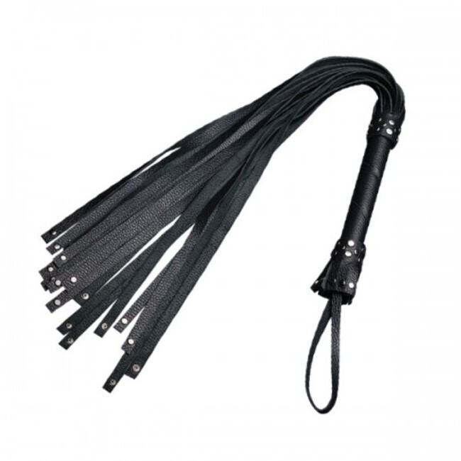 Черная плеть из натуральной кожи с металлическими заклепками станет идеальным аксессуаром для тех, кто ценит качество и стиль. Этот предмет не только выглядит эффектно, но и обеспечивает комфортное использование благодаря удобной ручке.