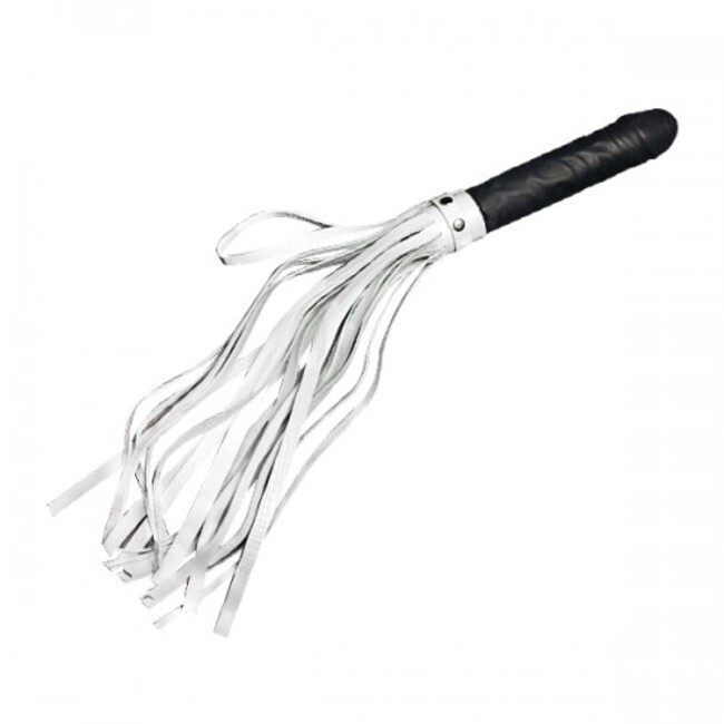 Плеть кожаная 'Ракета', черно-белая, 50см, с фаллической рукоятью
