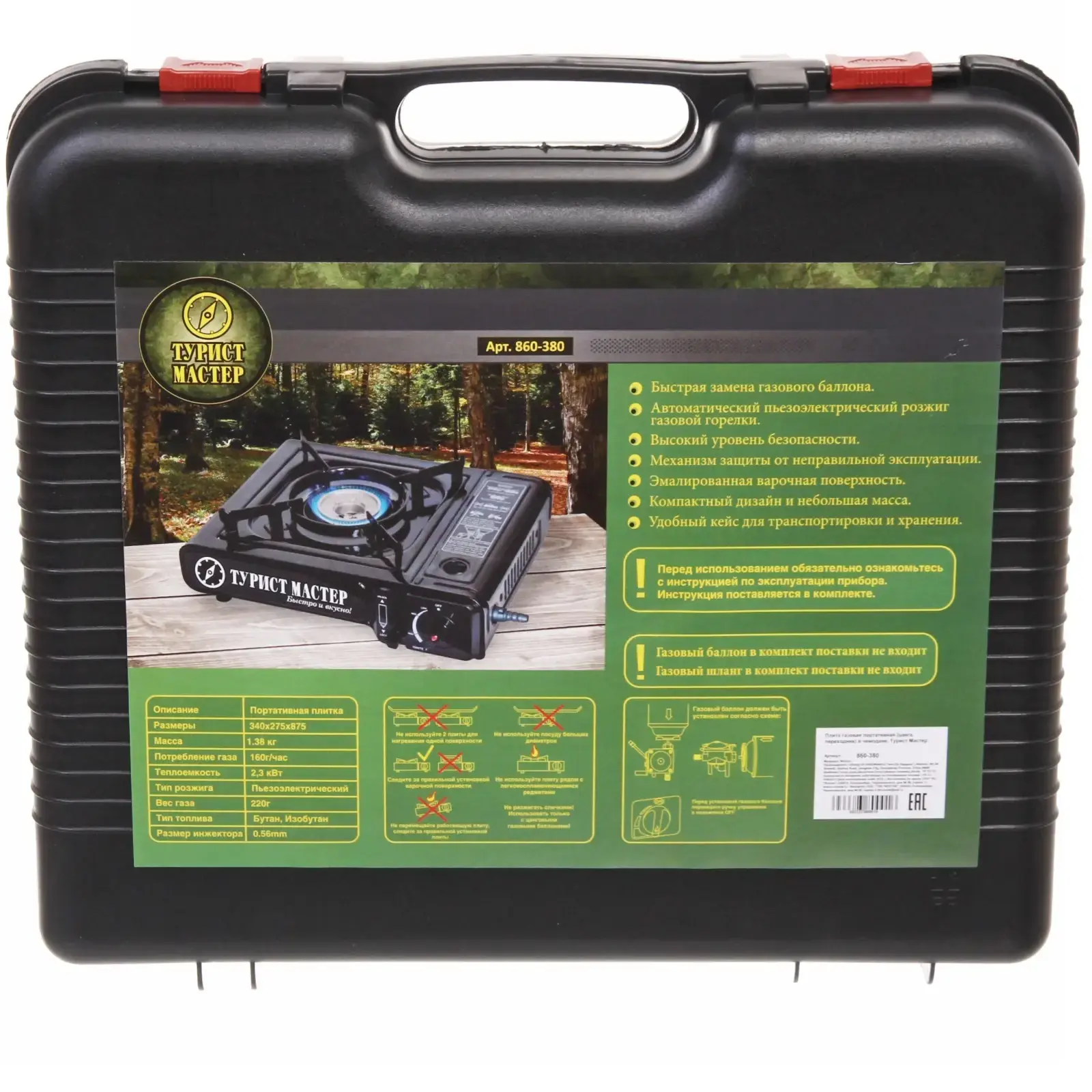 Плита газовая портативная «Турист Мастер» 34х27х8 см, металл, черный, с кейсом, защита от перегрева