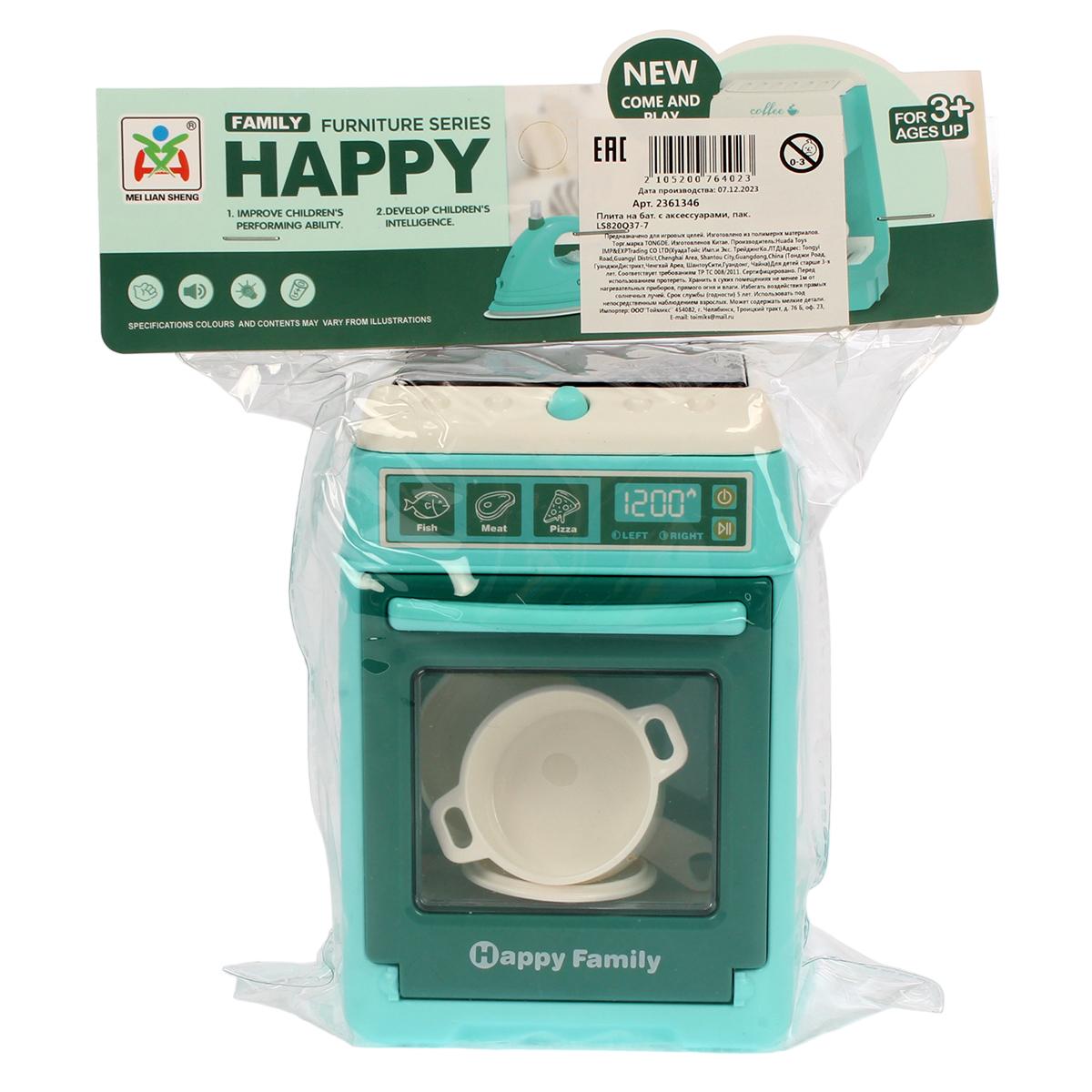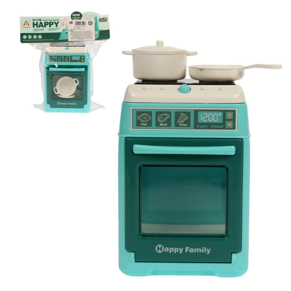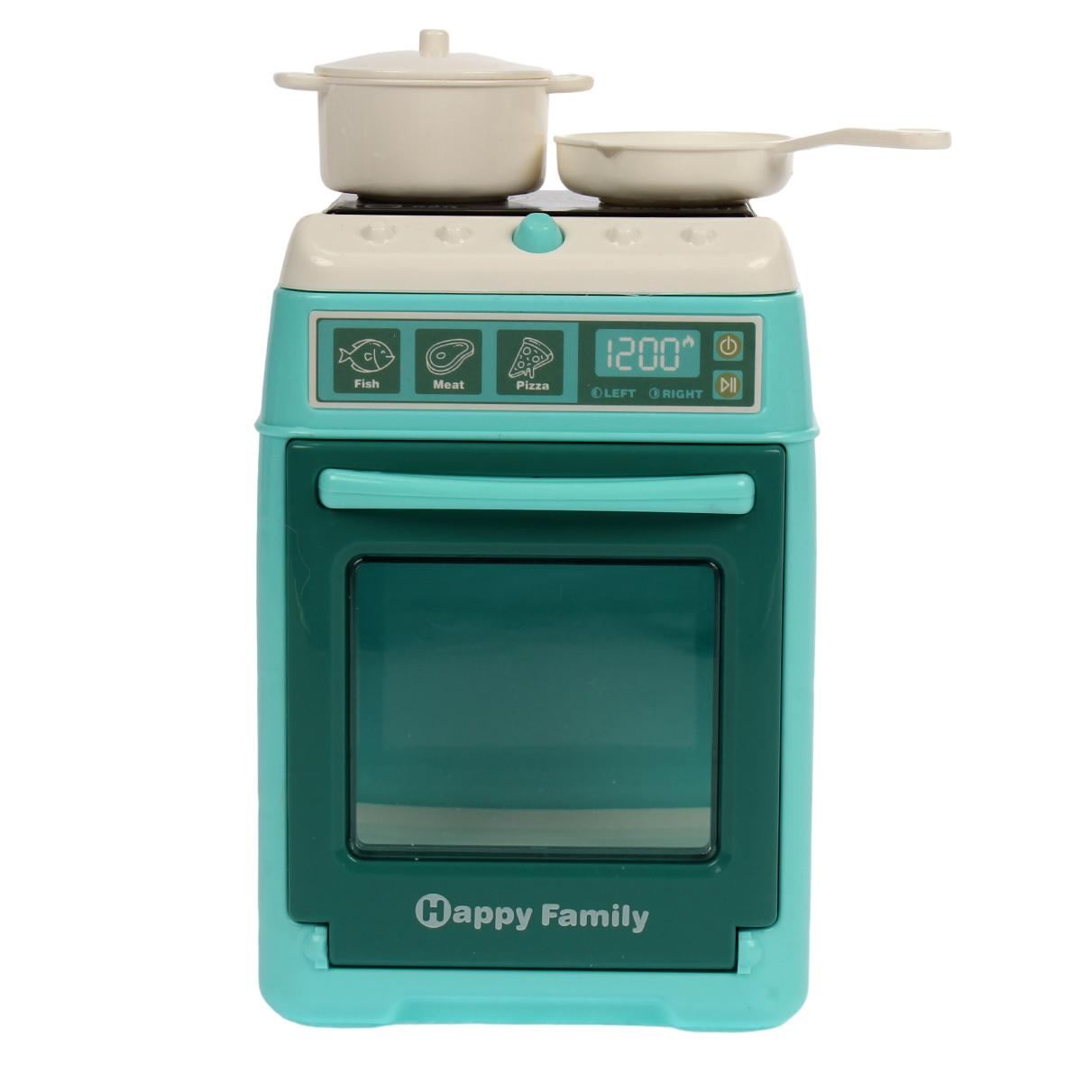 Игрушечная кухонная плита «Happy Family» со сковородой, кастрюлей и дисплеем, светло-зеленая