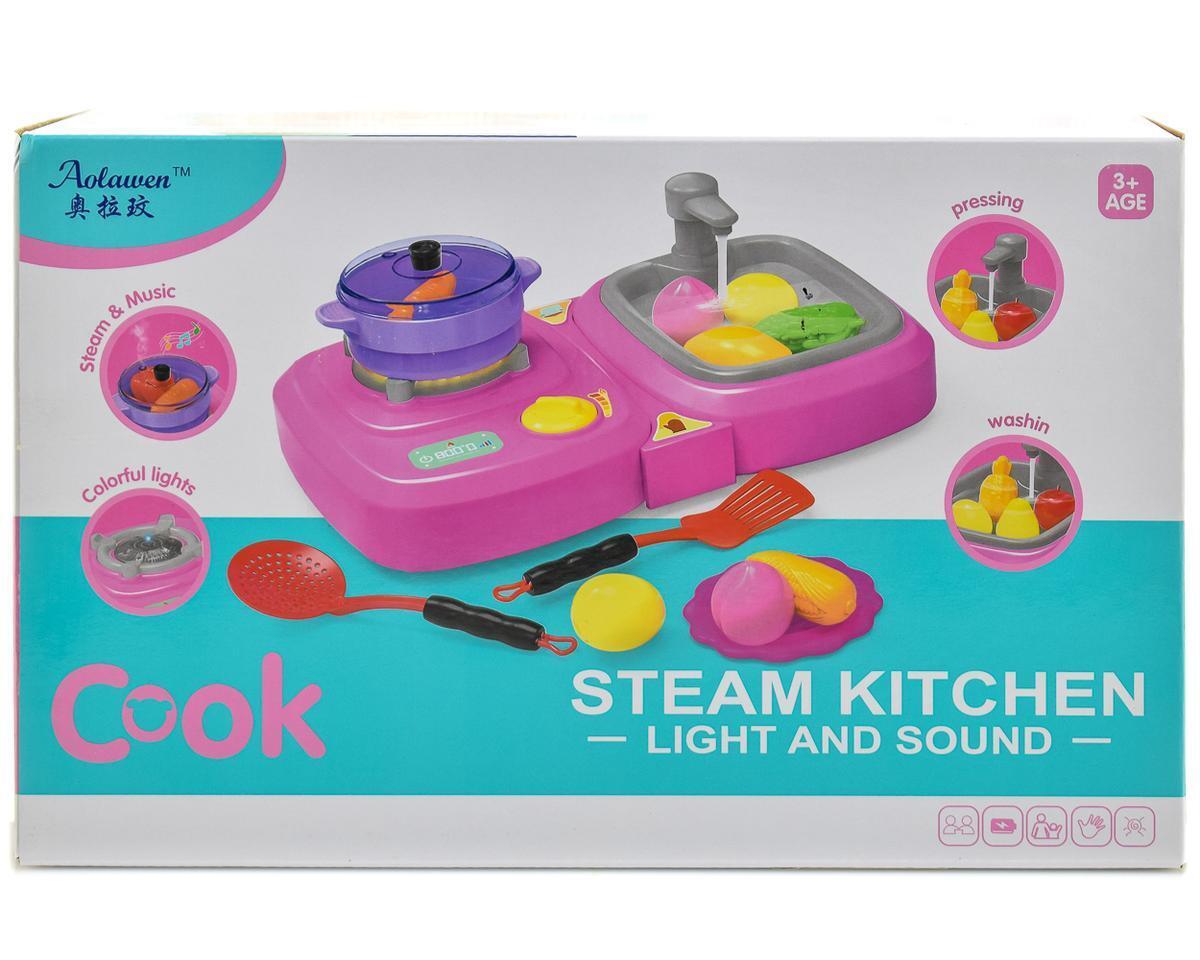 Игрушечная плита 'Cook Steam Kitchen', свет/звук, пар, розовый/серый