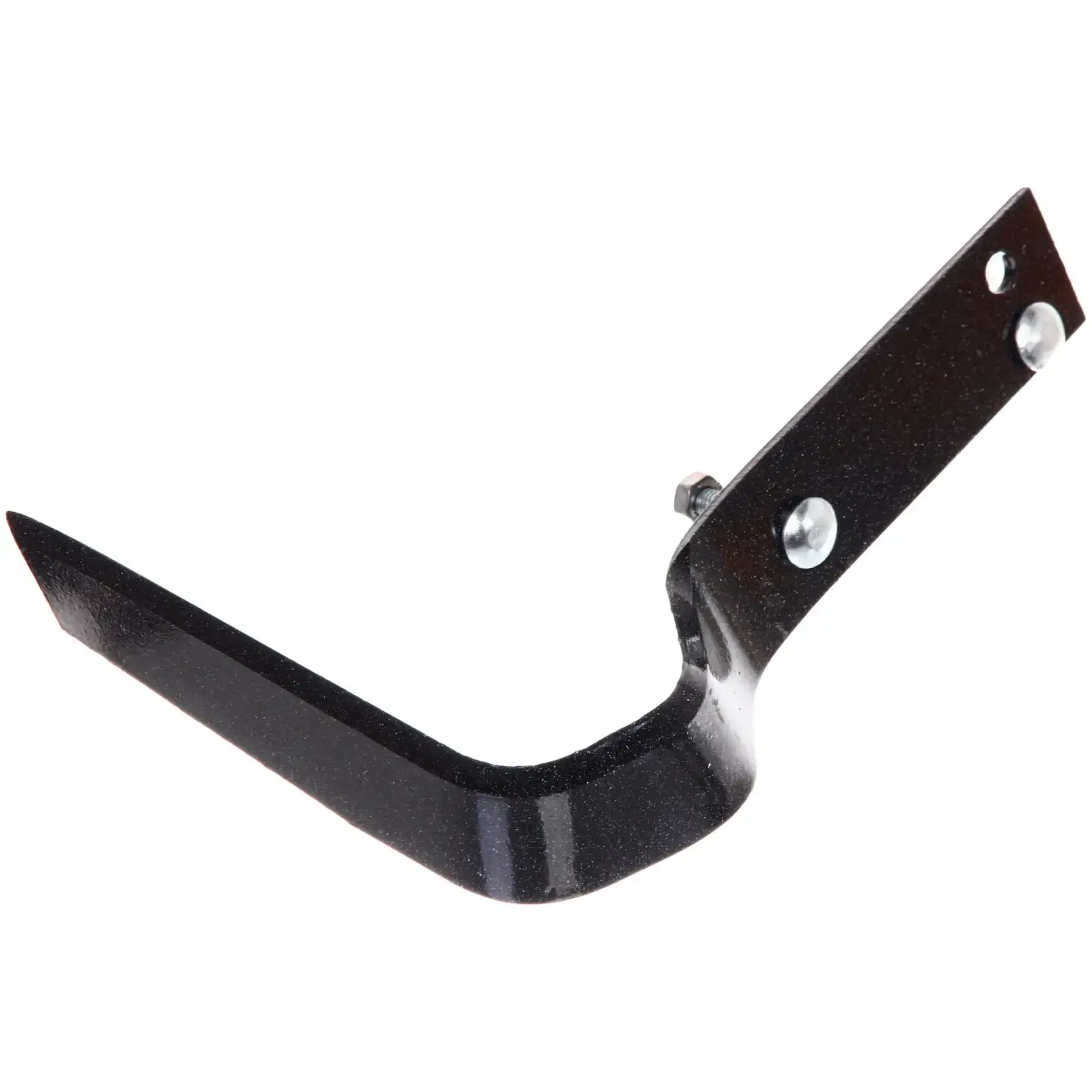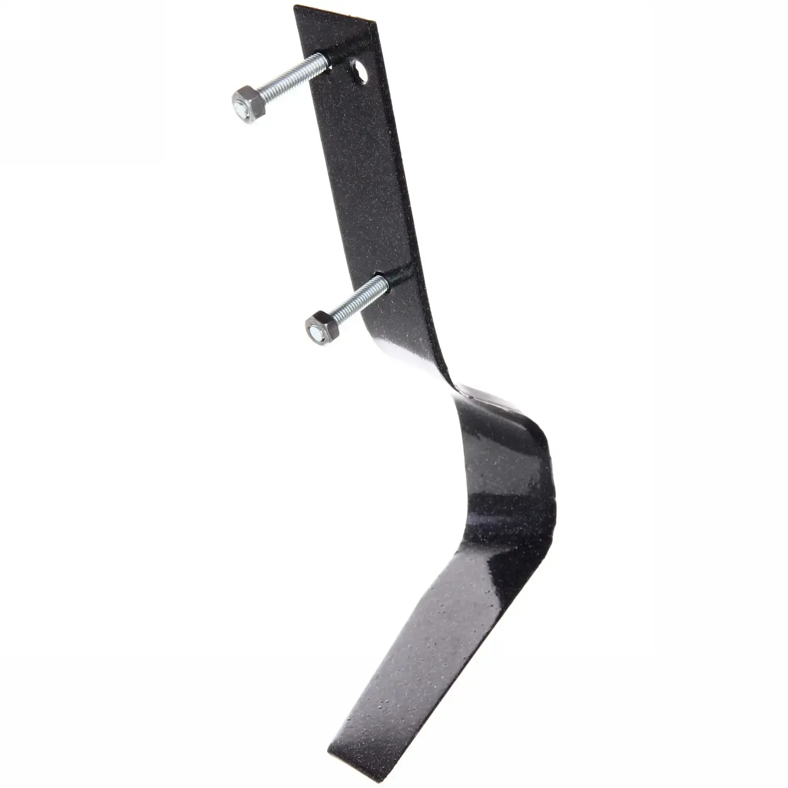 Плоскорез выполнен из качественного черного металла, что обеспечивает его прочность и устойчивость к коррозии. Инструмент имеет гладкую поверхность с легким блеском, что придает ему эстетичный вид. Размеры плоскореза позволяют использовать его одной рукой, что делает работу более комфортной.