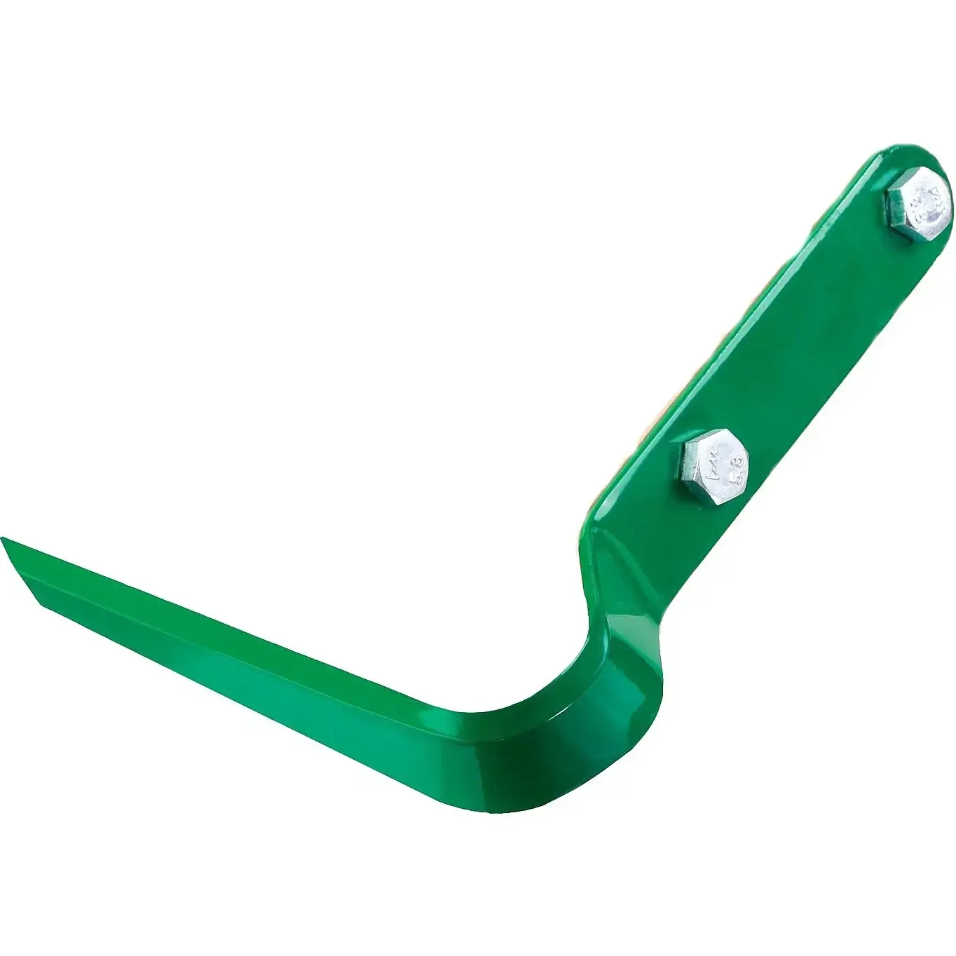Плоскорез имеет изогнутое лезвие, что позволяет легко и быстро рыхлить почву. Его длина и размеры не указаны, но инструмент спроектирован так, чтобы быть удобным в использовании. Ярко-зеленый цвет и металлическая конструкция делают его не только функциональным, но и стильным дополнением к вашему садовому инвентарю.