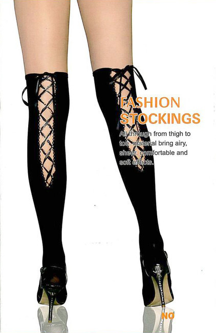 Чулки с открытой шнуровкой черный/золото, размер 42-44, эластан