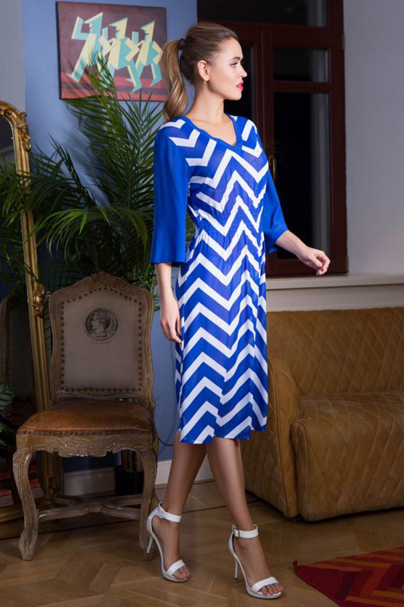 пляжное платье "Carlin" XXL, синий/белый ёлочка, резинка на талии, рукав 3/4, итальянский полиэстер