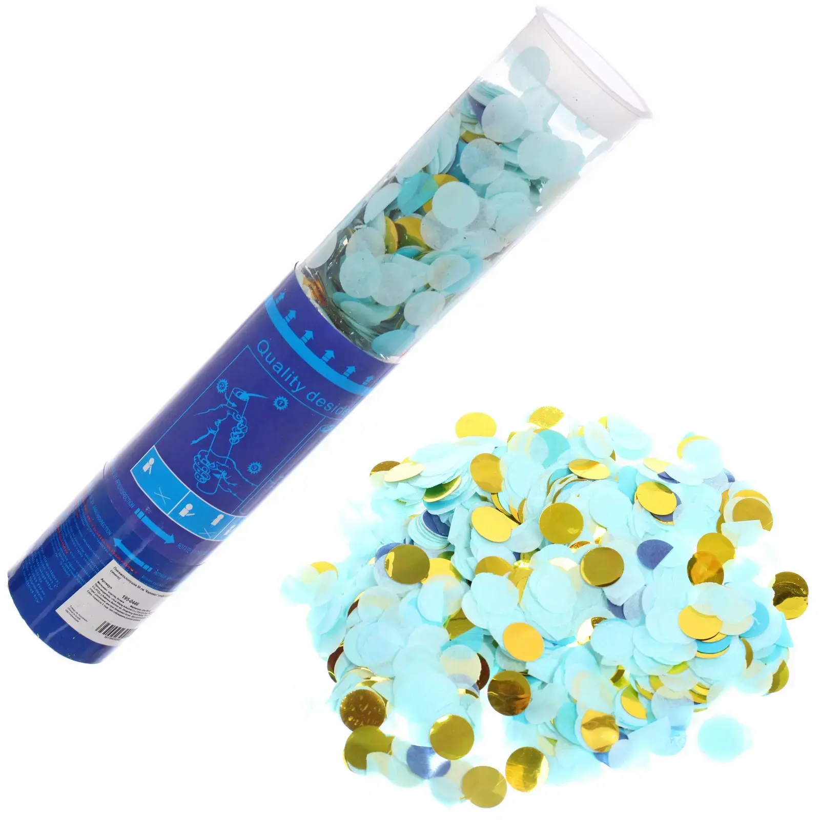 Пневмохлопушка 30 см «Карнавал» — это идеальный способ добавить яркие эмоции и радость в любое торжество. С помощью этой хлопушки вы сможете удивить своих гостей и создать незабываемые моменты. Конфетти, выполненные в светло-голубых и золотых оттенках, добавят яркости и веселья в ваше мероприятие.