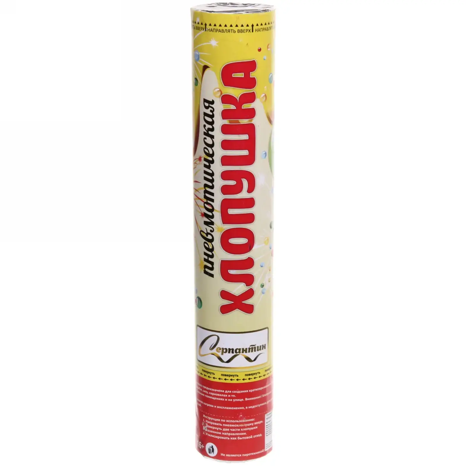 Размер пневмохлопушки составляет 30 см в длину и 6 см в диаметре, что делает ее стандартной для подобных товаров. Упаковка содержит все необходимые инструкции по безопасному использованию, а также предупреждение о том, что товар не является пищевым продуктом. Пневмохлопушка «Веселый праздник!» — это ваш надежный помощник в создании ярких и веселых моментов на любом празднике!