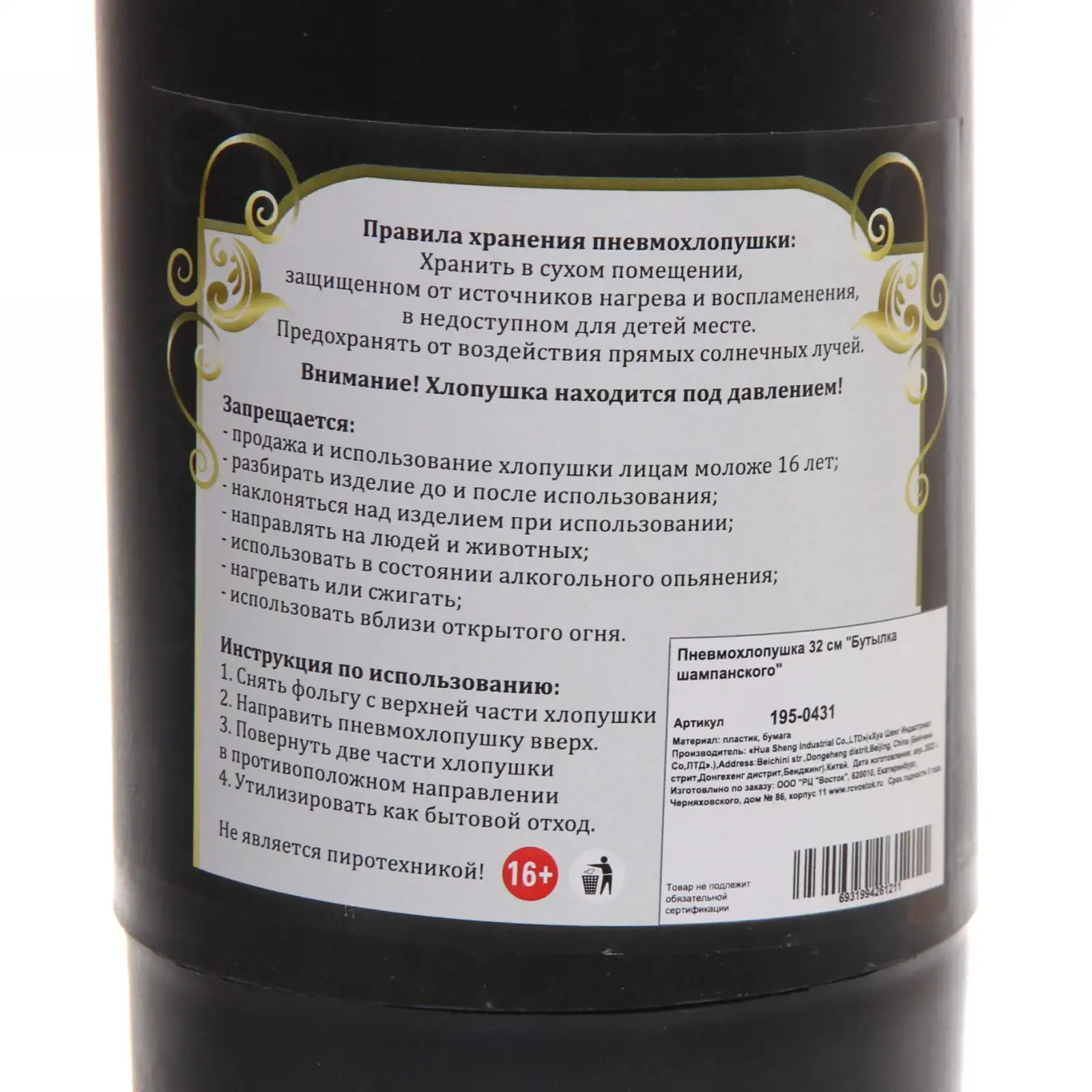 Хотите удивить гостей и добавить особого настроения вашему торжеству? Пневмохлопушка в виде стильной бутылки шампанского станет идеальным решением для любого праздника.