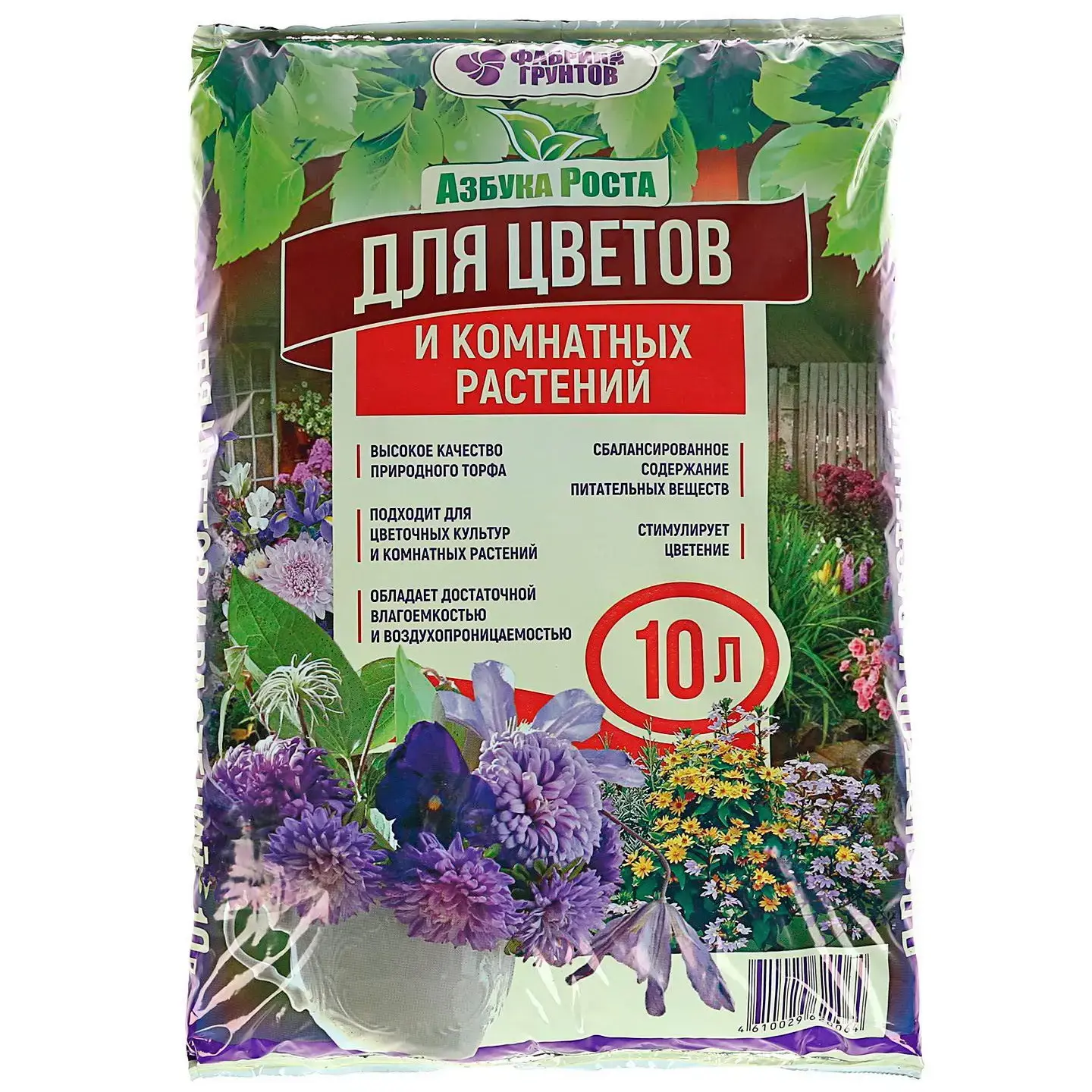 Почвогрунт универсальный цветочный "Азбука Роста", 10л, для комнатных растений и цветов