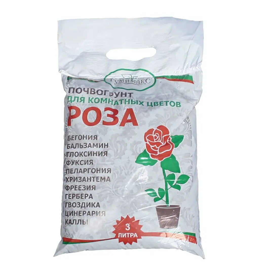 Почвогрунт «Роза» 3л для комнатных цветов: бегония, бальзамин, глоксиния, фуксия, пеларгония