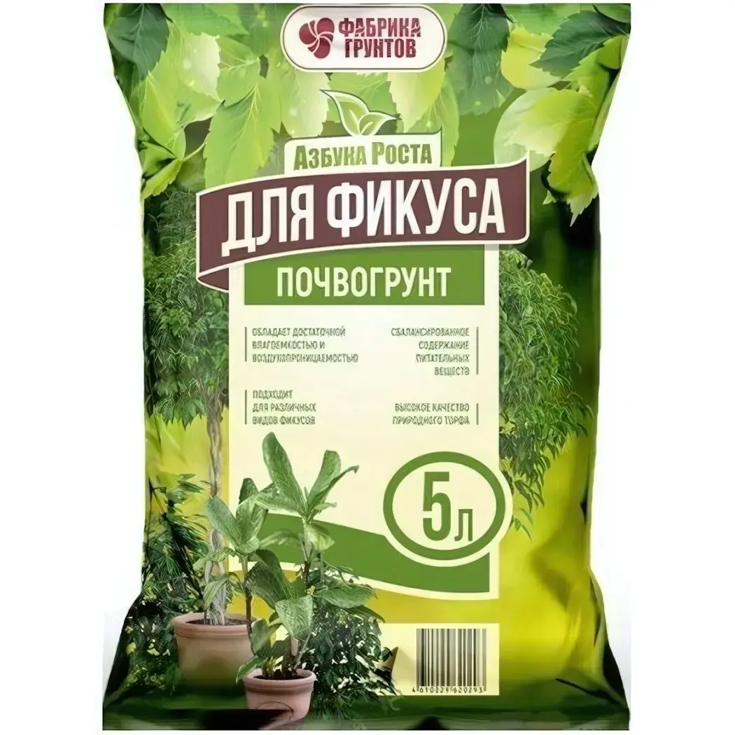 Почвогрунт «Азбука Роста» для фикуса, 5л, торф, удобрения, рыхлители