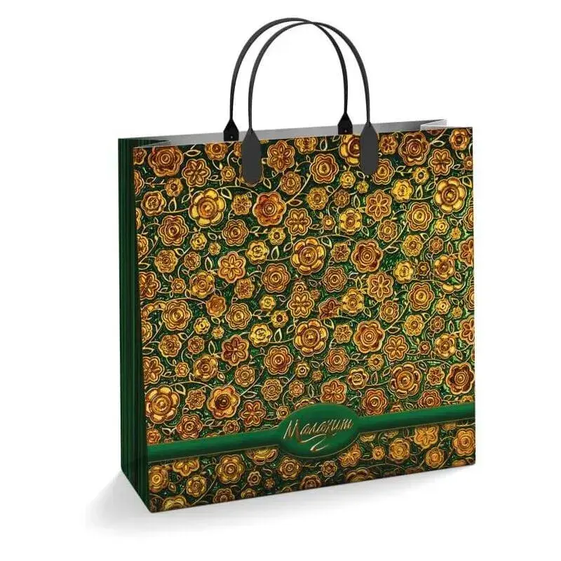 Пакеты из мягкого пластика с выразительным оттенком малахита создают идеальную презентацию для любого события. Удобные ручки и оптимальный размер 30x10 см позволяют разместить даже объемные сувениры.