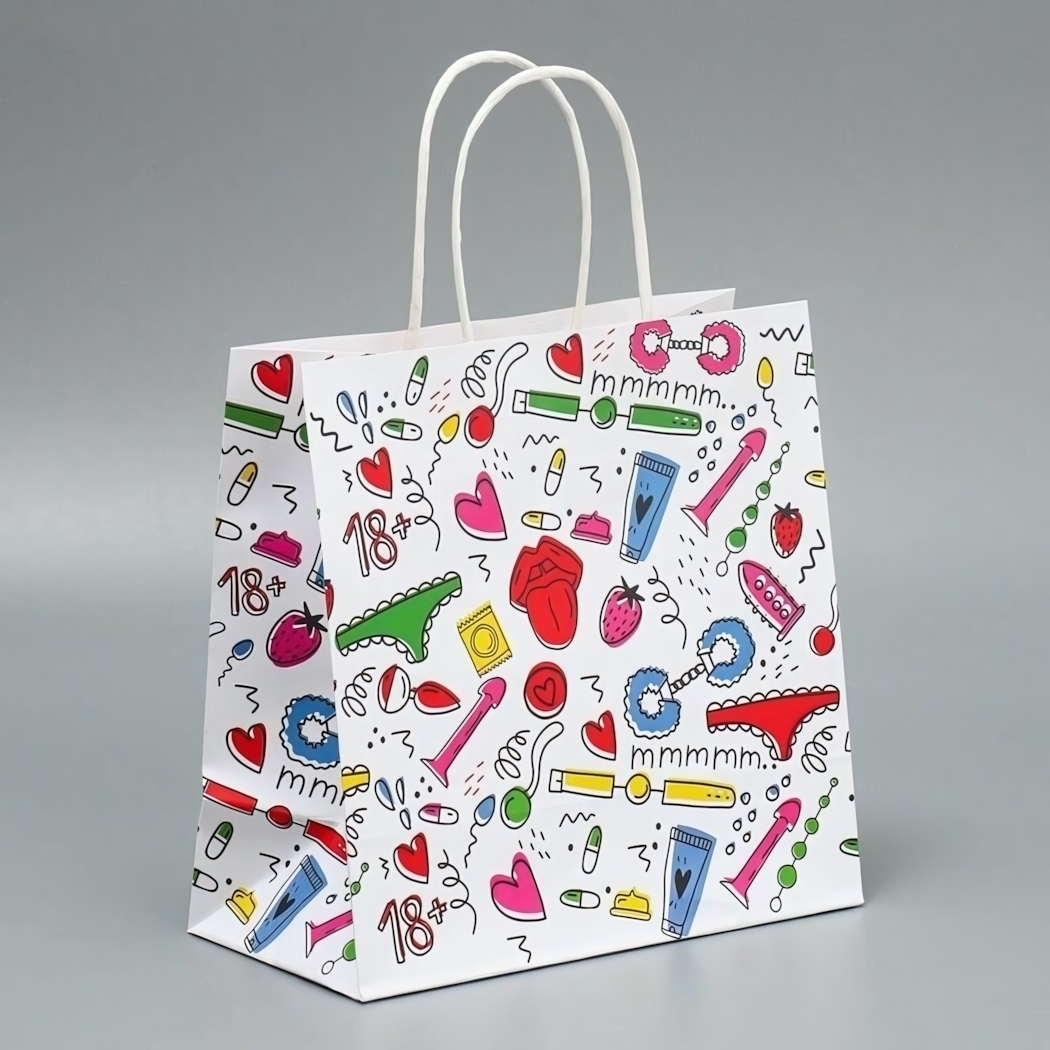 Оригинальный крафтовый пакет с тематическим дизайном создан для тех, кто ценит нестандартные решения в подарках. Яркие принты с игривыми элементами подчеркнут индивидуальность презента и создадут интригу перед вручением.