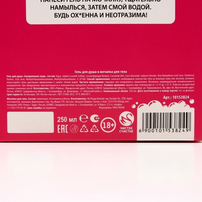 Гель для душа представлен в флаконе объемом 250 мл, а мочалка выполнена в ярко-розовом цвете с пышной формой. Упаковка набора также имеет яркий дизайн, что делает его привлекательным для молодежной аудитории. Не упустите возможность сделать себе или своим близким приятный сюрприз с этим замечательным подарочным набором!