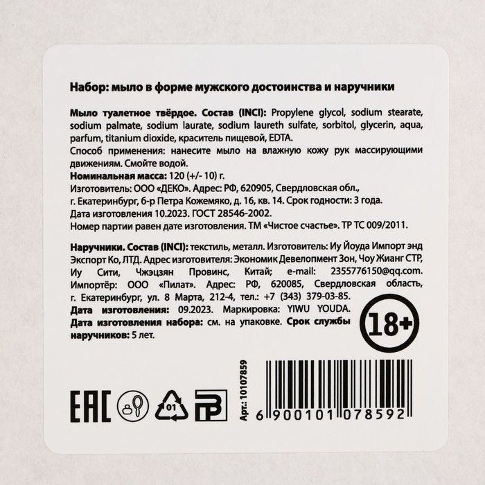 Этот уникальный набор станет отличным подарком для тех, кто ценит необычные и игривые моменты в жизни. Он включает в себя мыло для рук весом 120 грамм и наручники с мягким мехом, что добавляет нотку романтики и игривости в ваши отношения. Подарите себе или своим близким возможность насладиться новыми ощущениями и эмоциями!