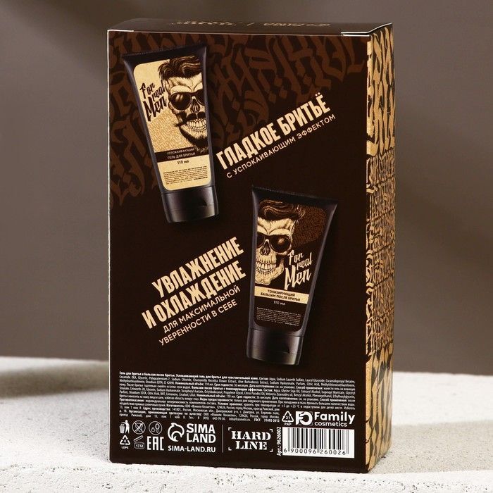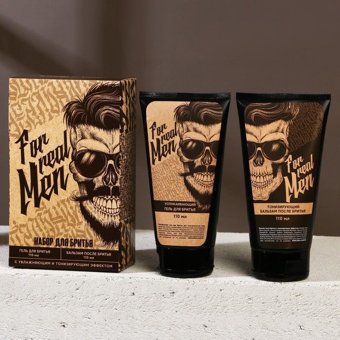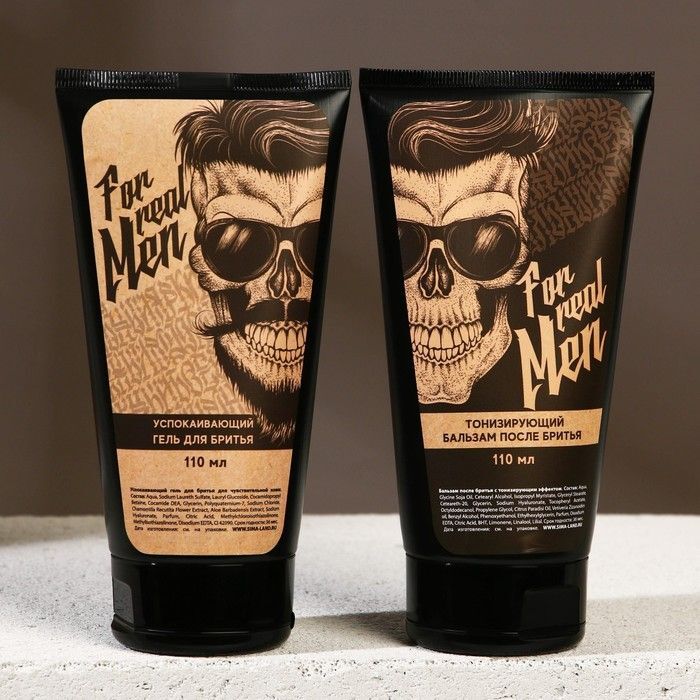 Оба продукта упакованы в удобные тюбики с закручивающимися крышками, что обеспечивает их долговечность и простоту использования. Упаковка выполнена в бежевом цвете с графическим изображением черепа, что подчеркивает мужскую тематику. Набор станет отличным дополнением к любому ритуалу ухода за собой.