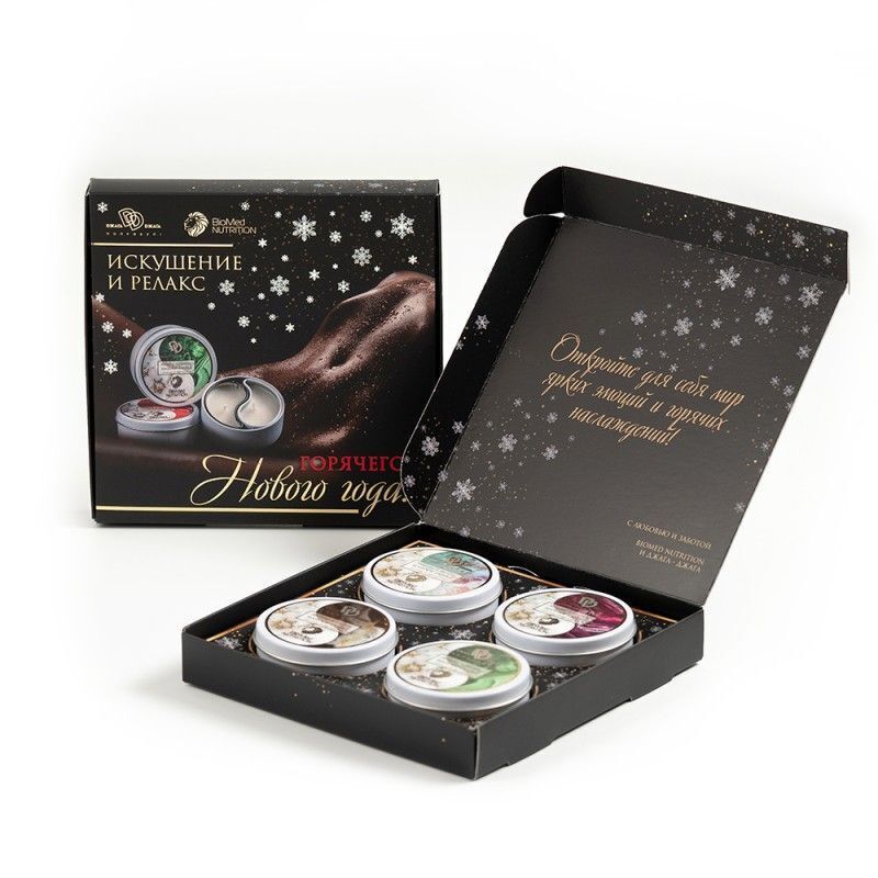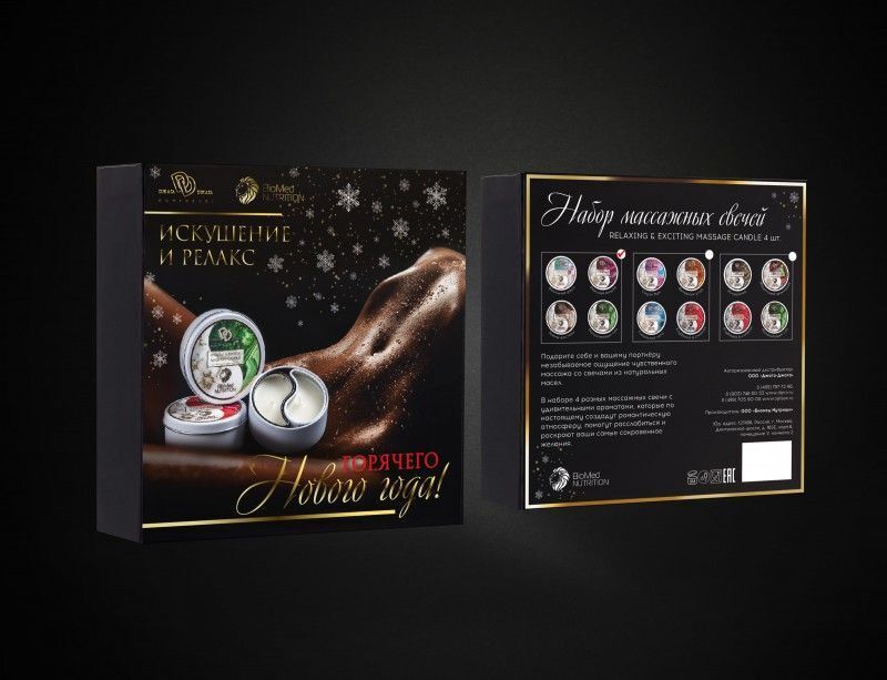 Каждая свеча упакована в стильную металлическую баночку, что делает их удобными для хранения и использования. Набор оформлен в праздничном дизайне, что делает его отличным подарком для особых случаев. Не упустите возможность добавить немного романтики в вашу жизнь с этим замечательным набором массажных свечей!