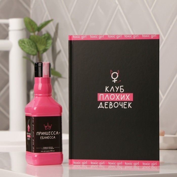 Гель для душа имеет упаковку розового цвета с черной этикеткой, а ежедневник выполнен в черном цвете с надписью «КЛУБ ПЛОХИХ ДЕВОЧЕК». Оба предмета упакованы в яркую коробку, что делает их готовыми к подарку. Не упустите возможность порадовать себя или близких этим замечательным набором!
