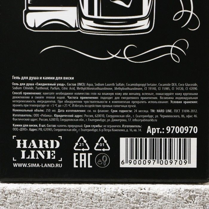 Гель для душа представлен в удобной упаковке объемом 250 мл, что делает его идеальным для использования дома или в поездках. Камни для виски имеют компактные размеры и легко помещаются в морозильник. Упаковка набора выполнена в стильном черно-белом дизайне, что делает его привлекательным для подарка.