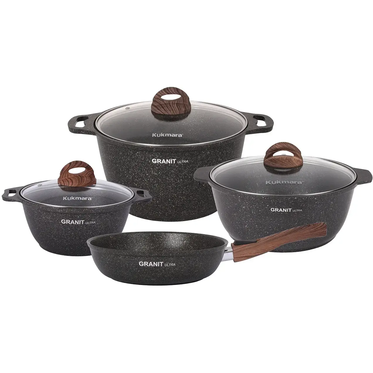 Набор посуды 'Granit Ultra' 4 предмета, кастрюли и сковорода, литой алюминий