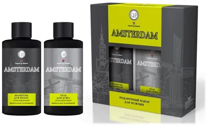 Подарочный набор Q.P. Amsterdam — это идеальный выбор для мужчин, которые ценят качество и стиль. Этот набор включает в себя шампунь для волос объемом 320 мл и гель для душа объемом 320 мл, что делает его отличным подарком для любого повода. Упаковка с черным и желтым дизайном, украшенная изображениями достопримечательностей Амстердама, придаст вашему подарку особую презентабельность и стиль.