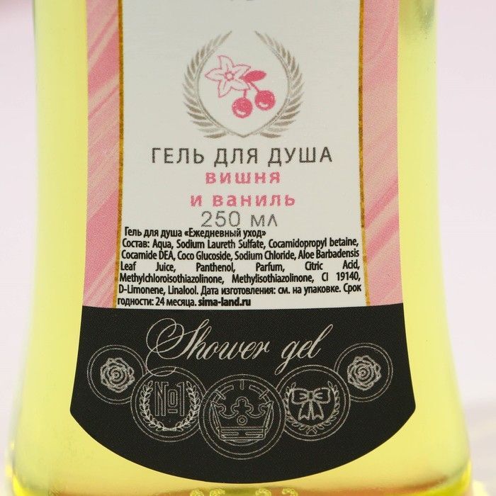 Гель для душа представлен в прозрачной бутылке с черной крышкой, а бомбочки для ванны имеют нежный светло-розовый цвет. Упаковка набора оформлена с золотыми элементами, что придаёт ей элегантный вид. Этот набор станет не только полезным, но и красивым дополнением к вашему уходу за собой.