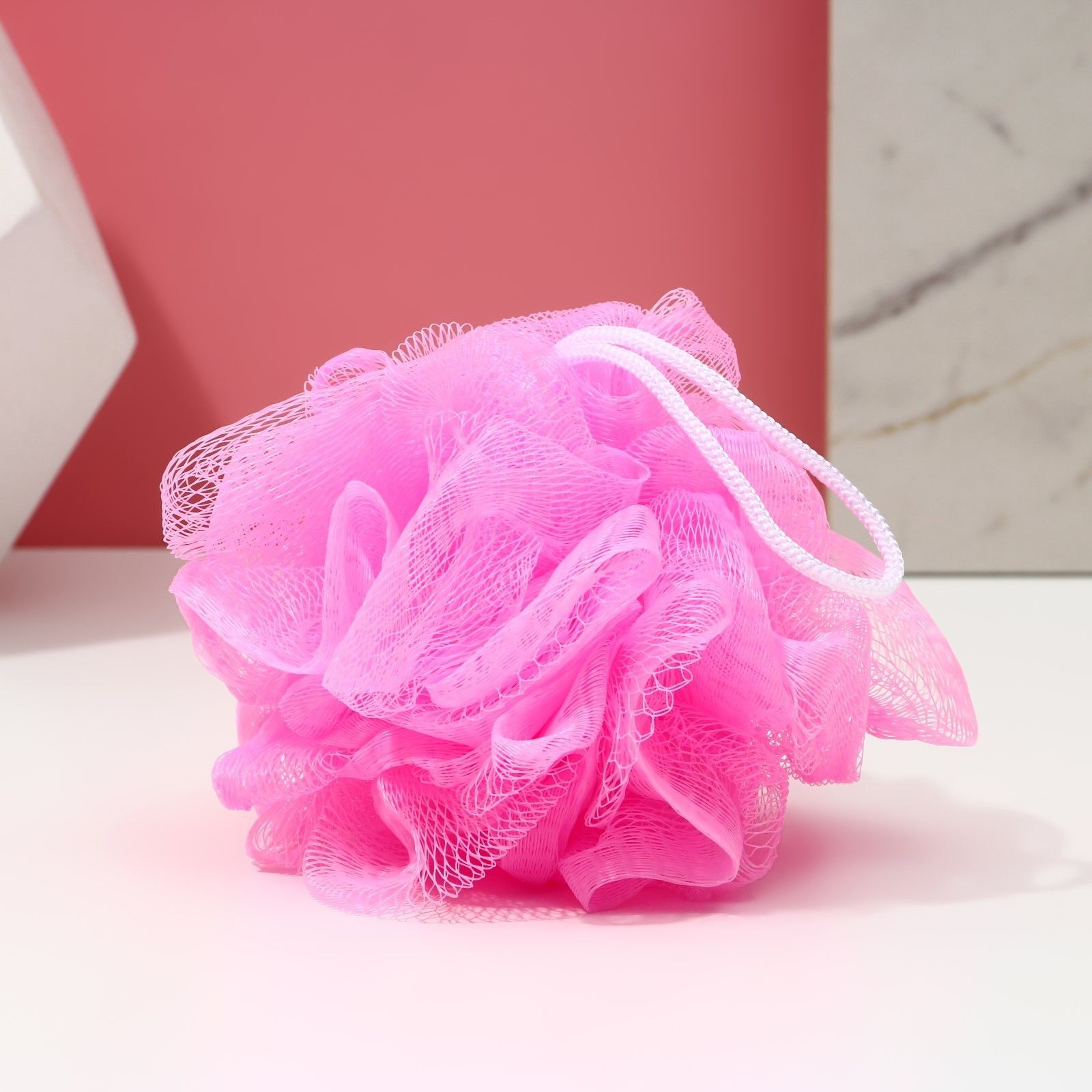 - Мягкая нежная мочалка из сетчатого материала, которая обеспечивает бережный уход за кожей