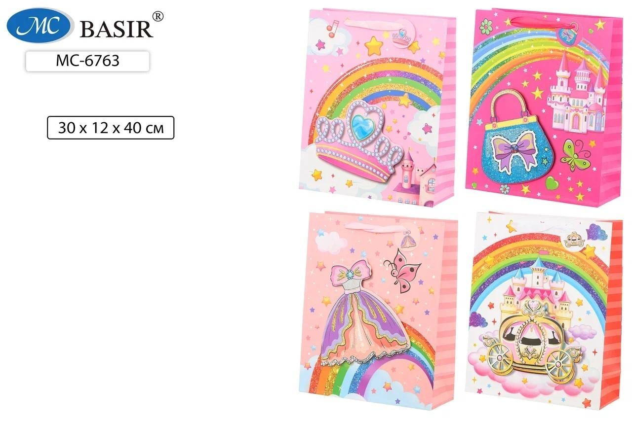 Товар представлен в ассортименте дизайнов: отгружается один подарочный пакет, расцветка определяется случайным образом. Каждый вариант выполнен в тематике «маленьких принцесс» и сохраняет праздничное настроение.