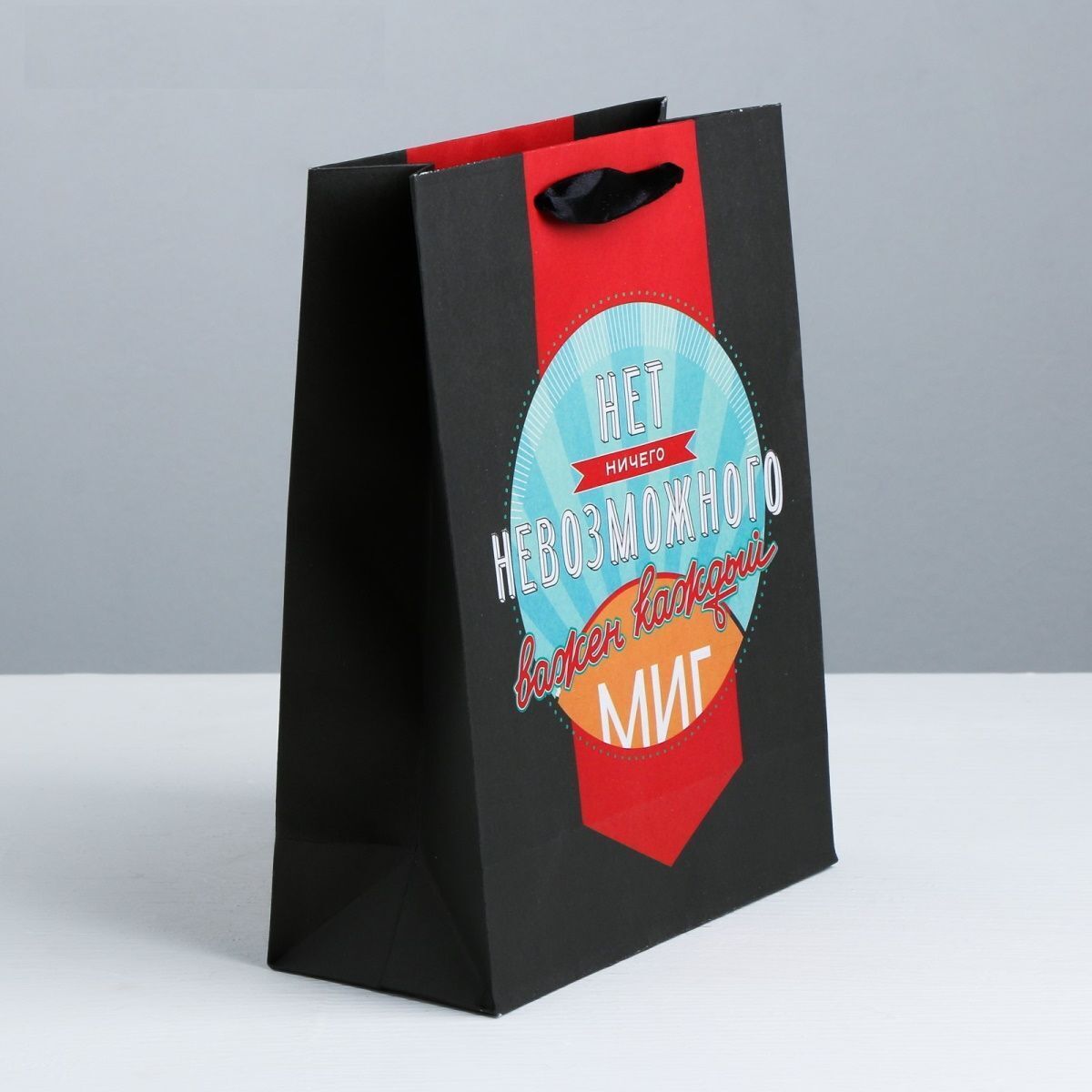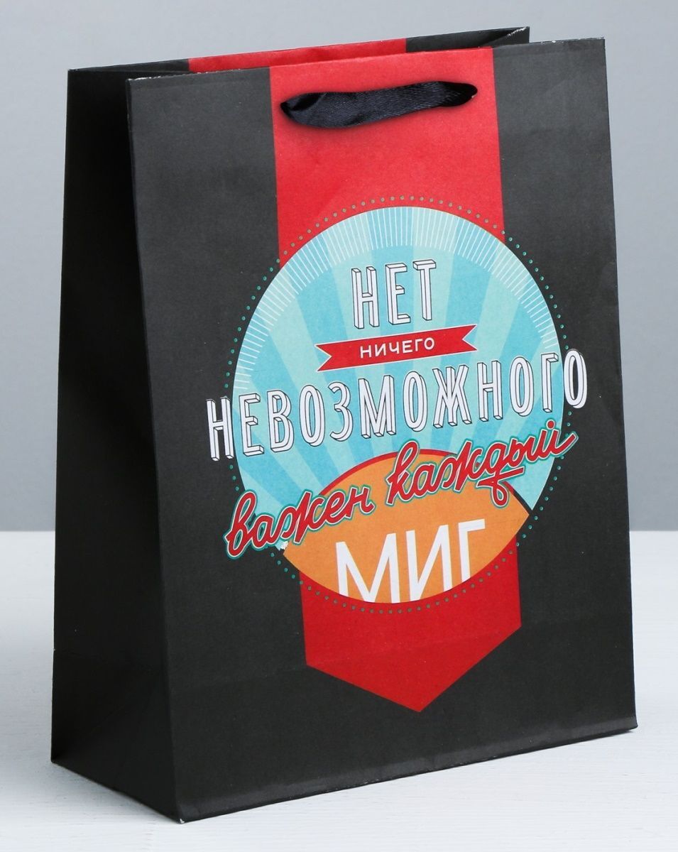 Почему стоит выбрать именно этот пакет? Во-первых, его ламинированная поверхность обеспечивает яркость и долговечность дизайна. Красивый принт с надписью 'НЕТ НИЧЕГО НЕВОЗМОЖНОГО важен каждый МИГ' добавляет оригинальности и делает пакет запоминающимся. Во-вторых, качественная печать гарантирует, что рисунок не сотрется и не выгорит со временем, сохраняя привлекательный вид.