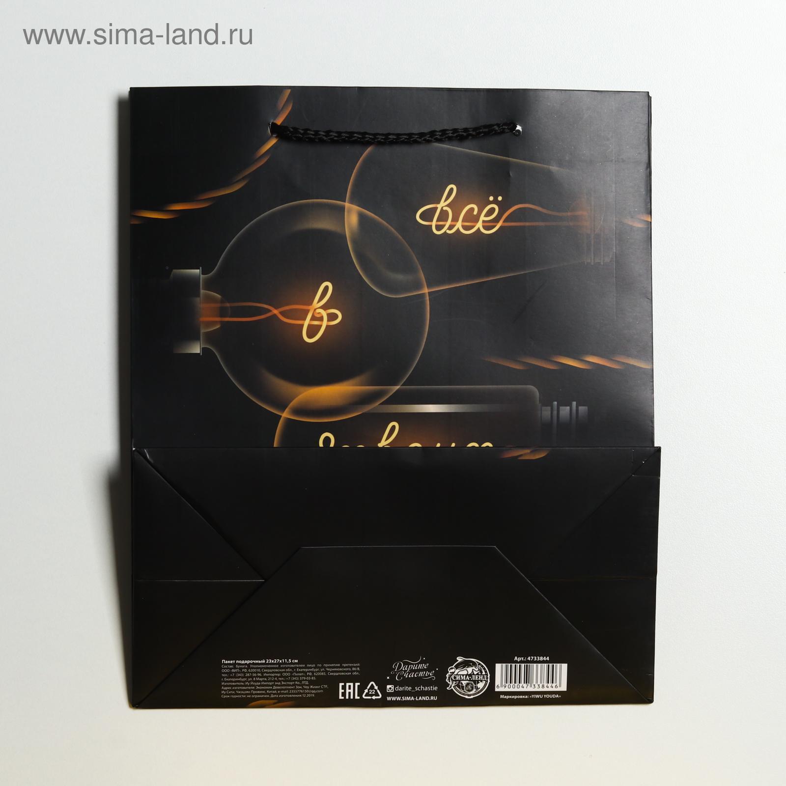 Ищете идеальный способ упаковать подарок? Подарочный пакет 'Все в твоих руках' станет вашим незаменимым помощником! Этот стильный черный пакет не только привлекает внимание, но и обеспечивает надежность при переноске. Ламинированная бумага, из которой он изготовлен, гарантирует долговечность и прочность, позволяя выдерживать до 10 кг. Пакет станет отличным выбором для любого торжества, будь то день рождения, юбилей или просто приятный сюрприз для близкого человека.