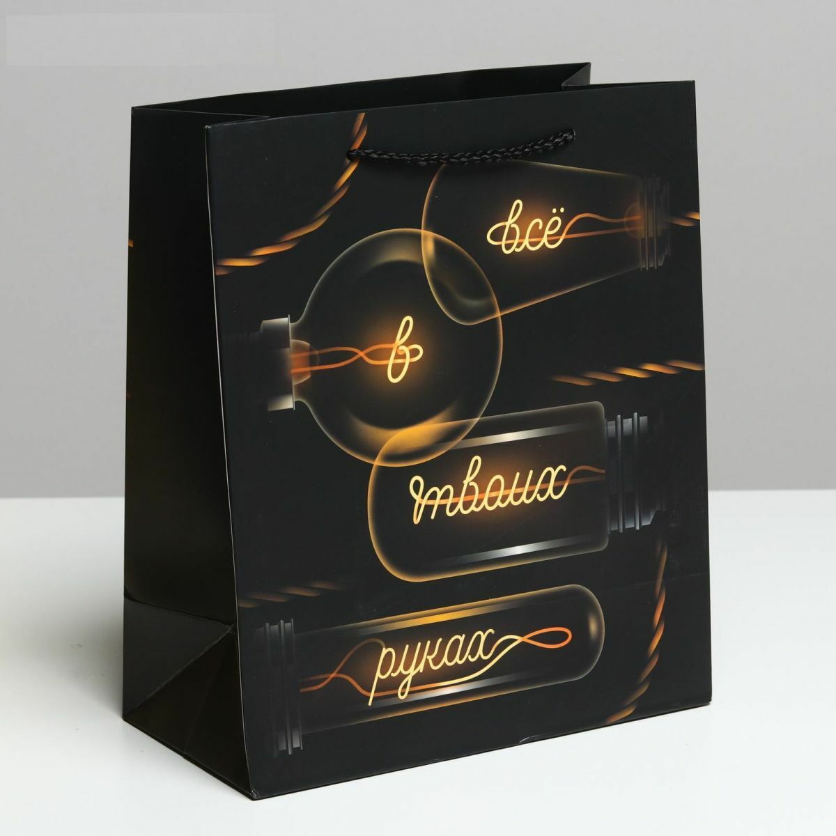 Выбирая этот пакет, вы получаете не только красивую упаковку, но и уверенность в том, что ваш подарок будет выглядеть стильно и привлекательно. Качественная печать рисунка гарантирует, что он не выгорит и не сотрется, сохраняя свой первоначальный вид на протяжении долгого времени. Пакет 'Все в твоих руках' — это не просто упаковка, это часть вашего подарка!