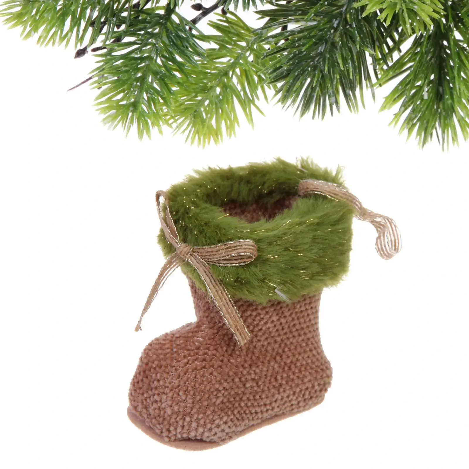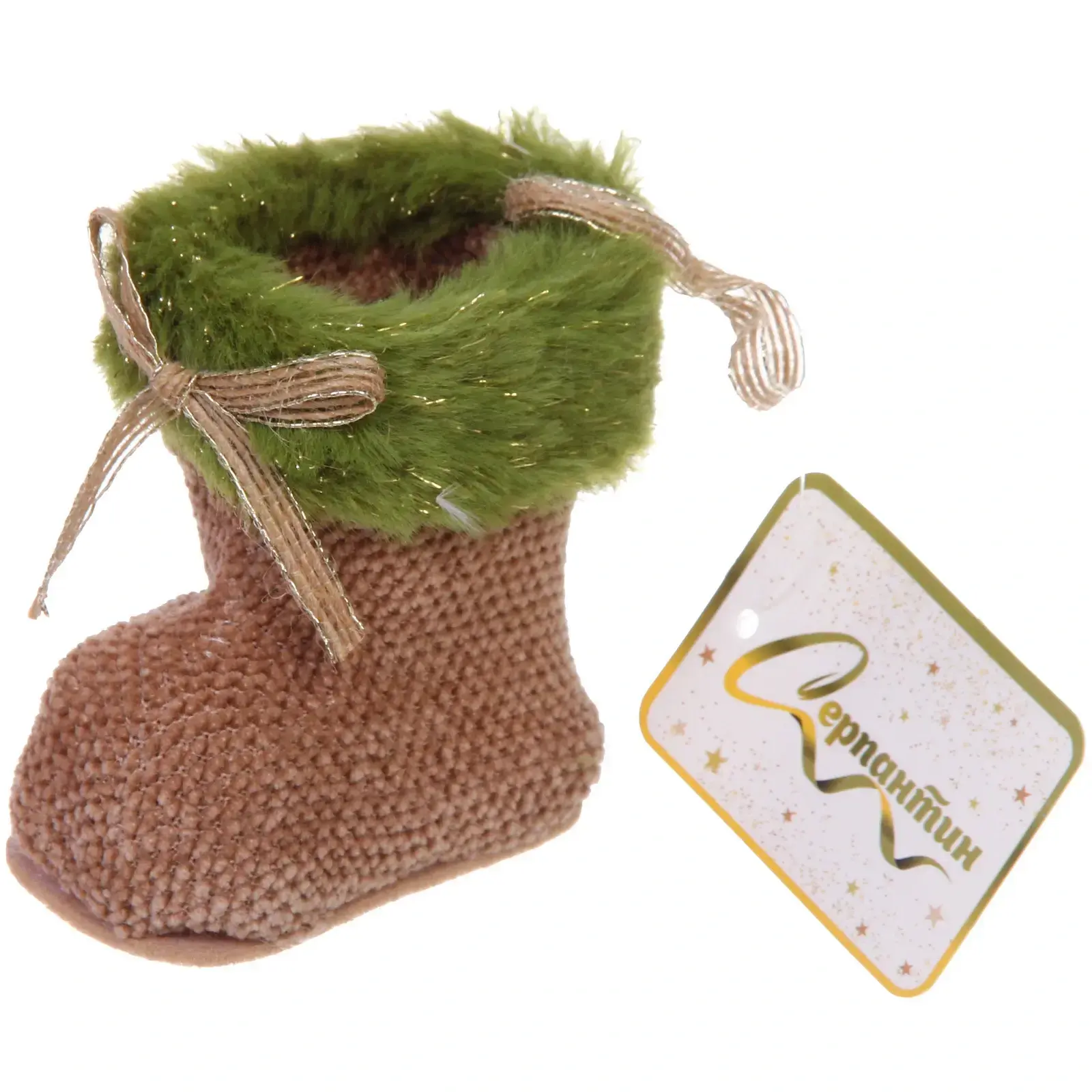 Создайте уютную атмосферу в вашем доме с помощью декоративного ботинка «Лесной ботиночек» высотой 7 см. Этот стильный элемент декора добавит нотку волшебства в ваш интерьер, особенно в праздничный сезон. Его коричневый цвет и зеленая отделка с блестками делают его идеальным для украшения рождественской елки или камина.