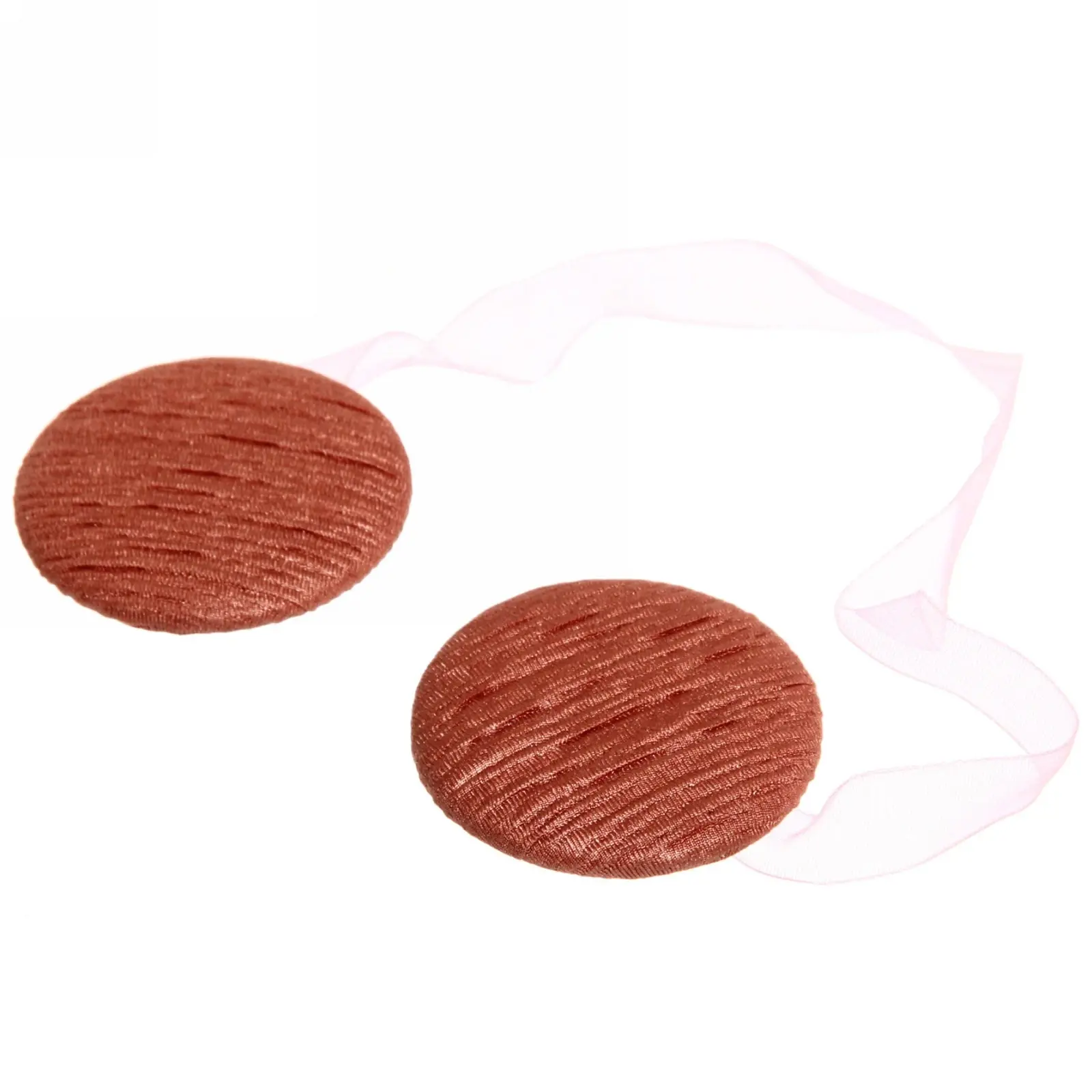 Материал круглых элементов — пластик с тканевым покрытием, придающим изделию декоративный вид и приятную текстуру. Встроенный магнит обеспечивает надёжное удержание, а мягкая полупрозрачная лента делает крепление аккуратным. Отгружается один подхват, цвет определяется точно — бордовый.