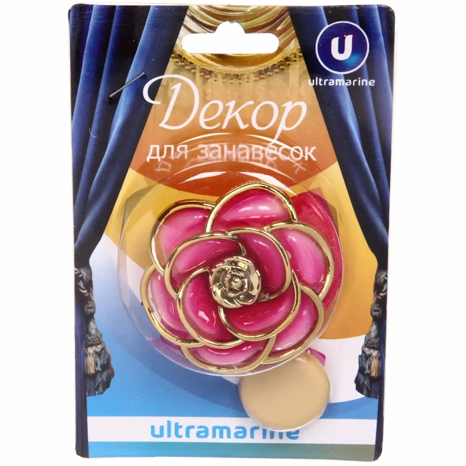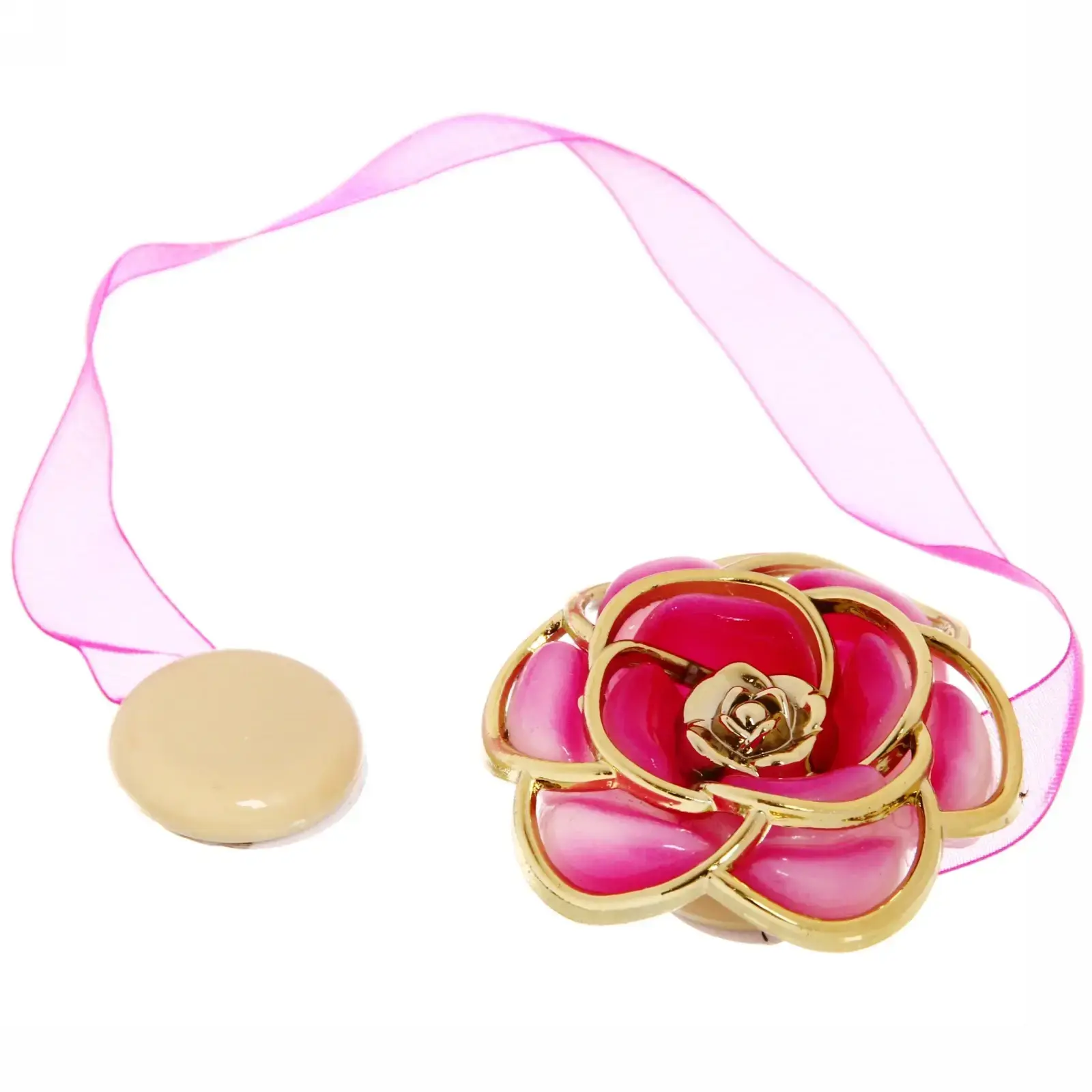Этот декоративный подхват выполнен в форме цветка с лепестками розового цвета, украшенными золотистыми контурами, создавая особую атмосферу уюта и стиля в вашем доме.